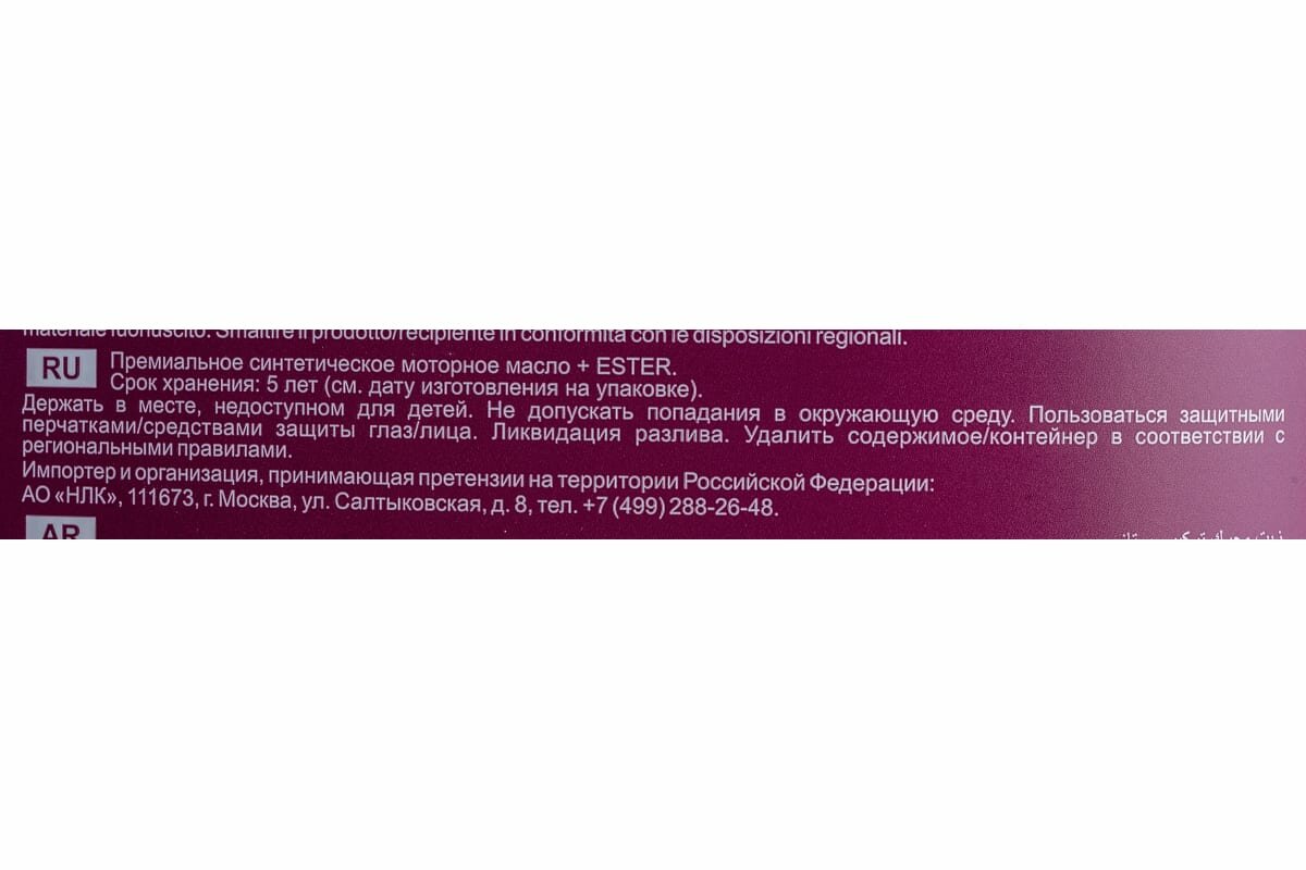 | Класс вязкости SAE | 10W-60 |