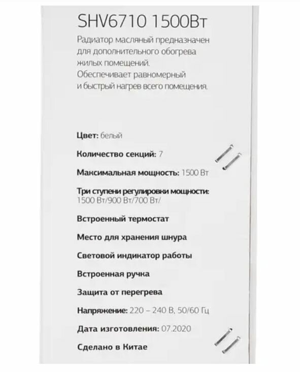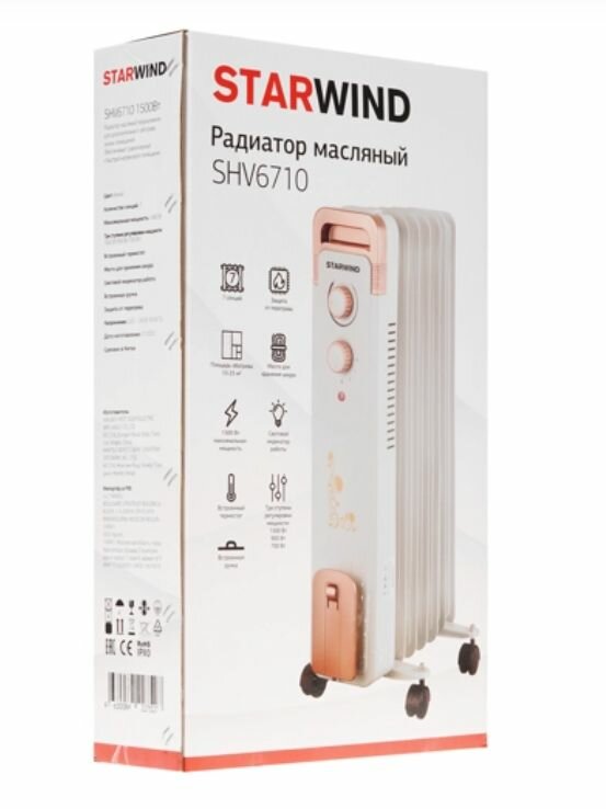 Масляный радиатор StarWind SHV6710, 1500Вт, белый