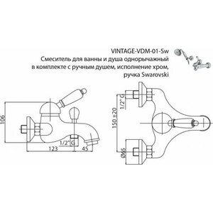 СохранитьСмеситель для ванны или для душа Cezares VINTAGE-VDM-03/24-Sw интересное: