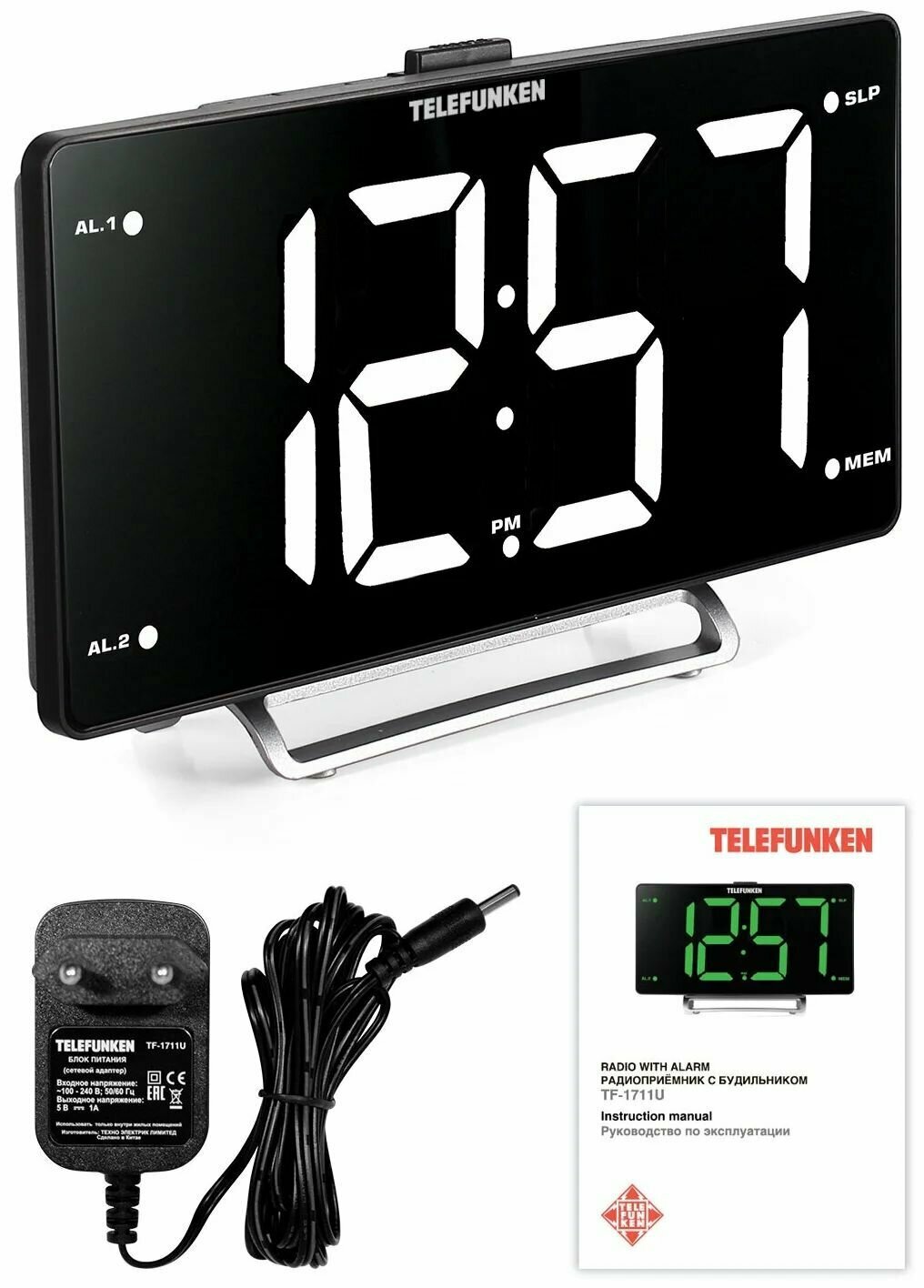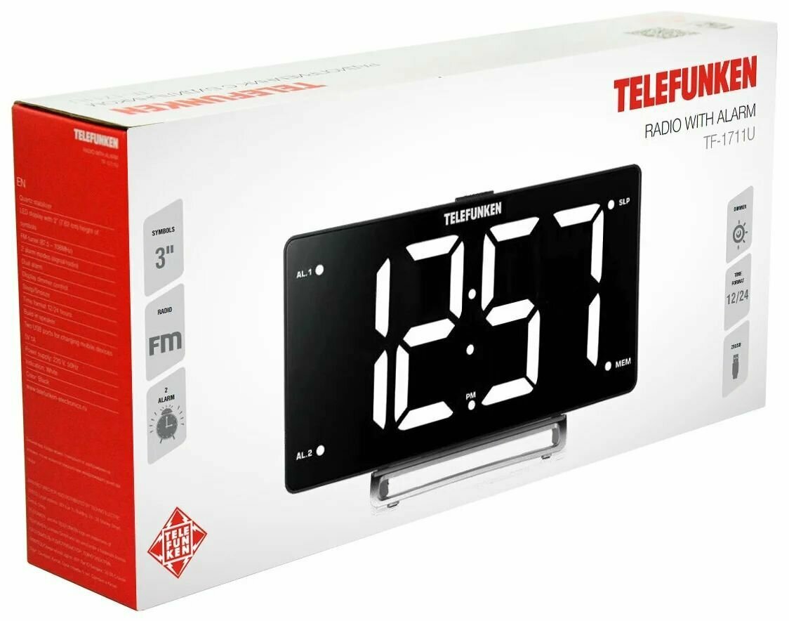 Радиочасы Telefunken TF-1711U(черный с белым) TF-1711U(черный с белым) .