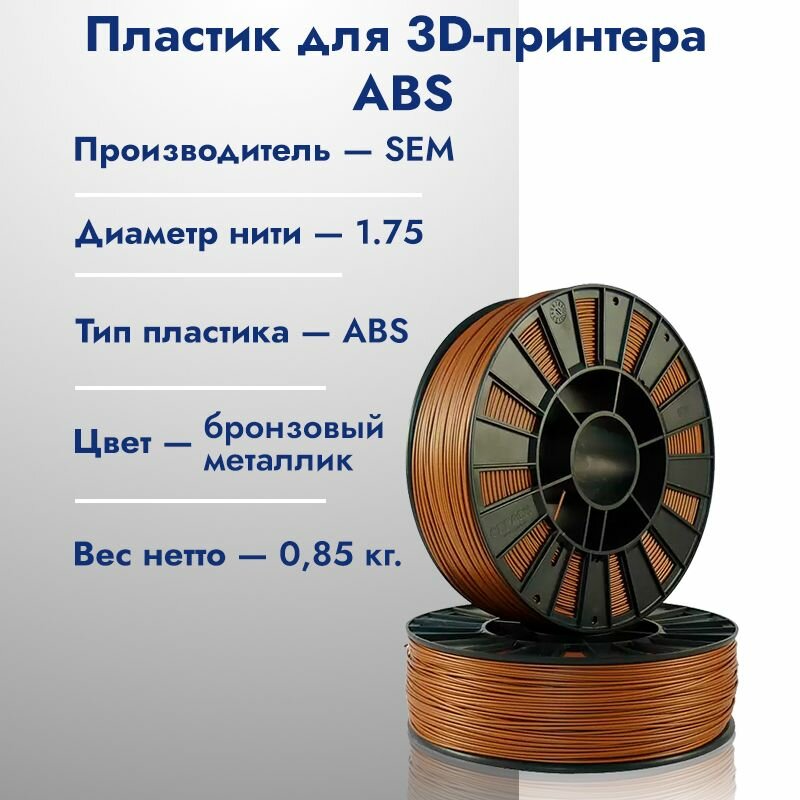 Купить ABS пластик SEM для 3D принтера 1.75, Бронзовый металлик, 1кг