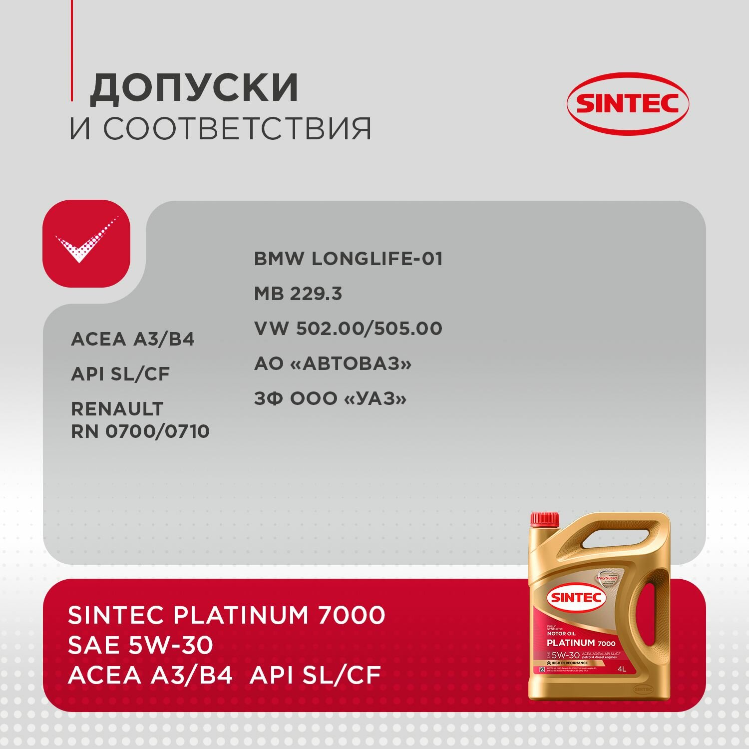 Моторное масло SINTEC Platinum 7000 5W-30 (4л) SIN-5W30-A3B4-4L