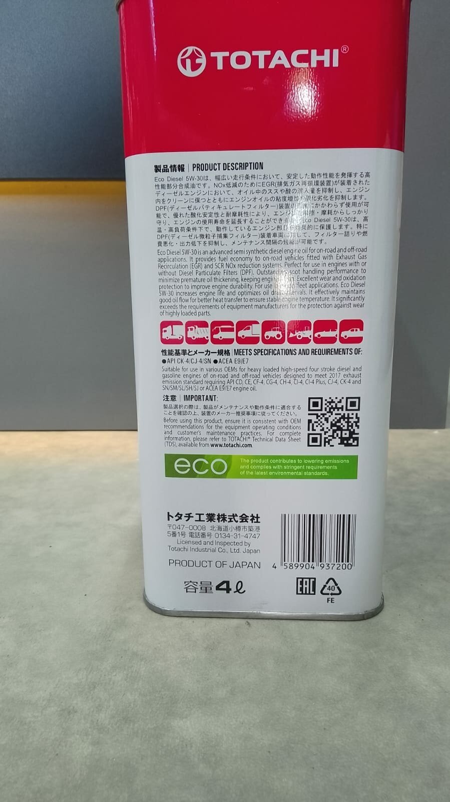 Ниже Вы можете прочитать отзывы на 5W-30 Eco Diesel Ck-4/Cj-4/Sn, 4Л (Полусинт. Мотор. Масло) TOTACHI арт. E2204, ознакомится с подробными характеристиками, посмотреть интересные обзоры и фотографии на 5W-30 Eco Diesel Ck-4/Cj-4/Sn, 4Л (Полусинт. Мотор. Масло) TOTACHI арт. E2204.