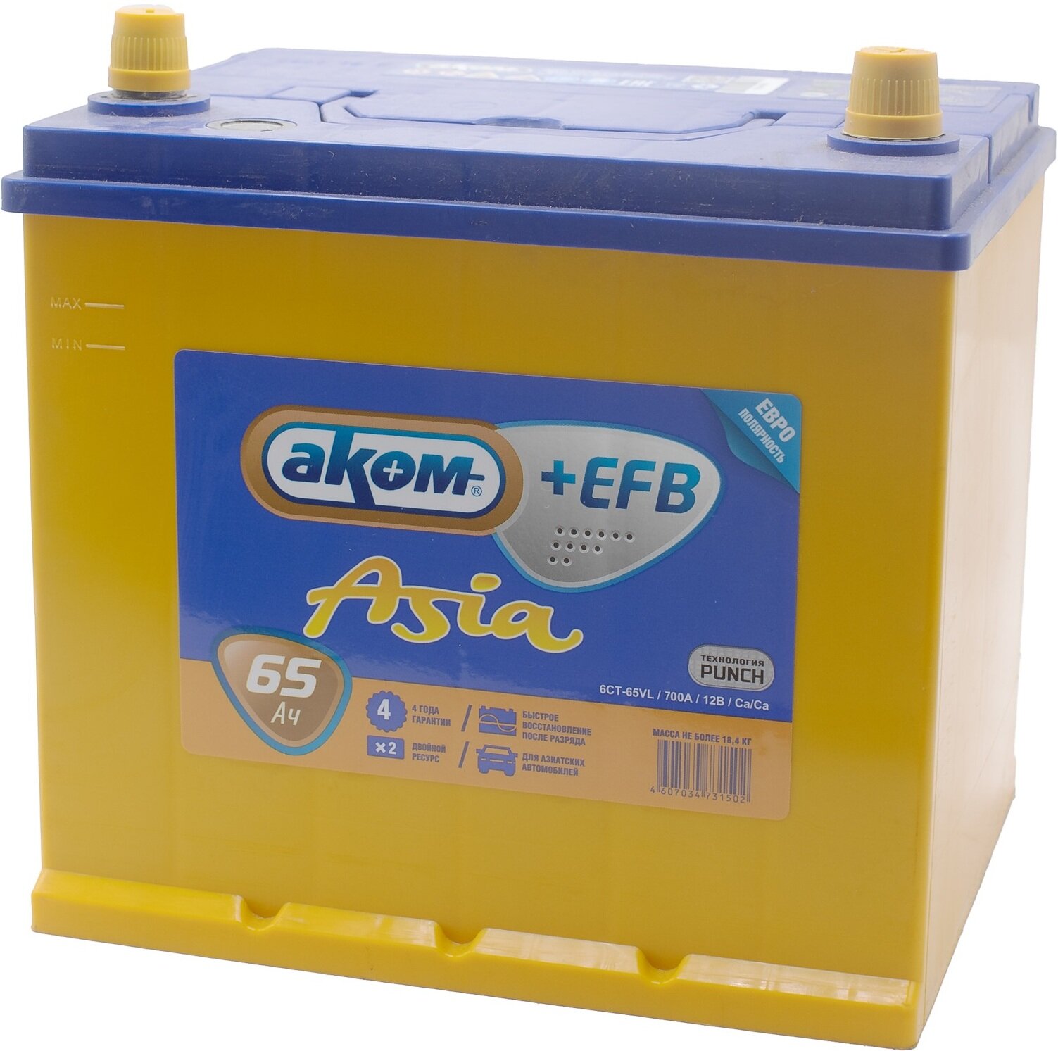 Аккумулятор Аком Asia Efb 65 А/Ч Обратная R+ 232X173x223 En700 А АКОМ арт. 6CT-65.0 ASIA EFB