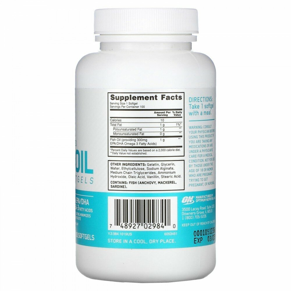 Optimum Nutrition, Рыбий жир с кишечнорастворимым покрытием, 100 мягких желатиновых капсул