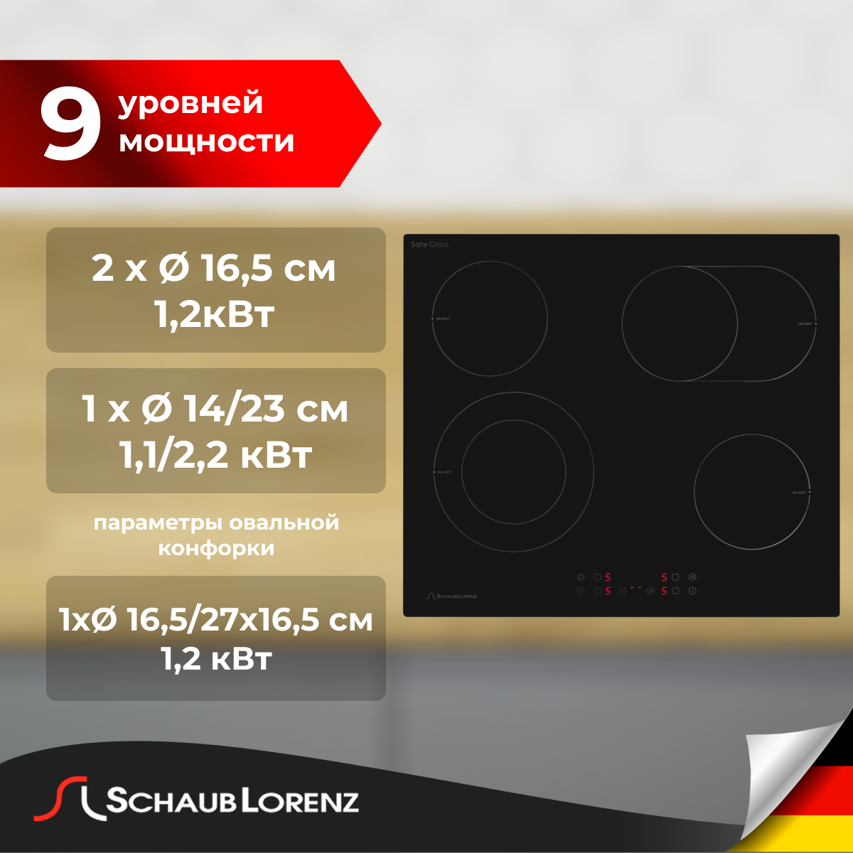 Электрическая встраиваемая варочная панель Schaub Lorenz SLK CY 62 T5, 60см, чёрный, стеклокерамика