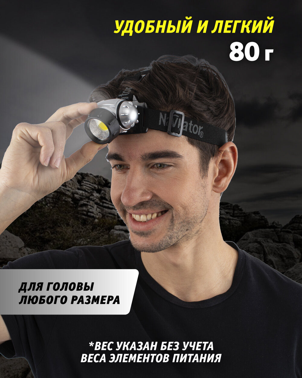 Фонарь налобный Navigator 61 437 NPT-H14, 3 режима работы, работает от батареек 3ААА интересное: