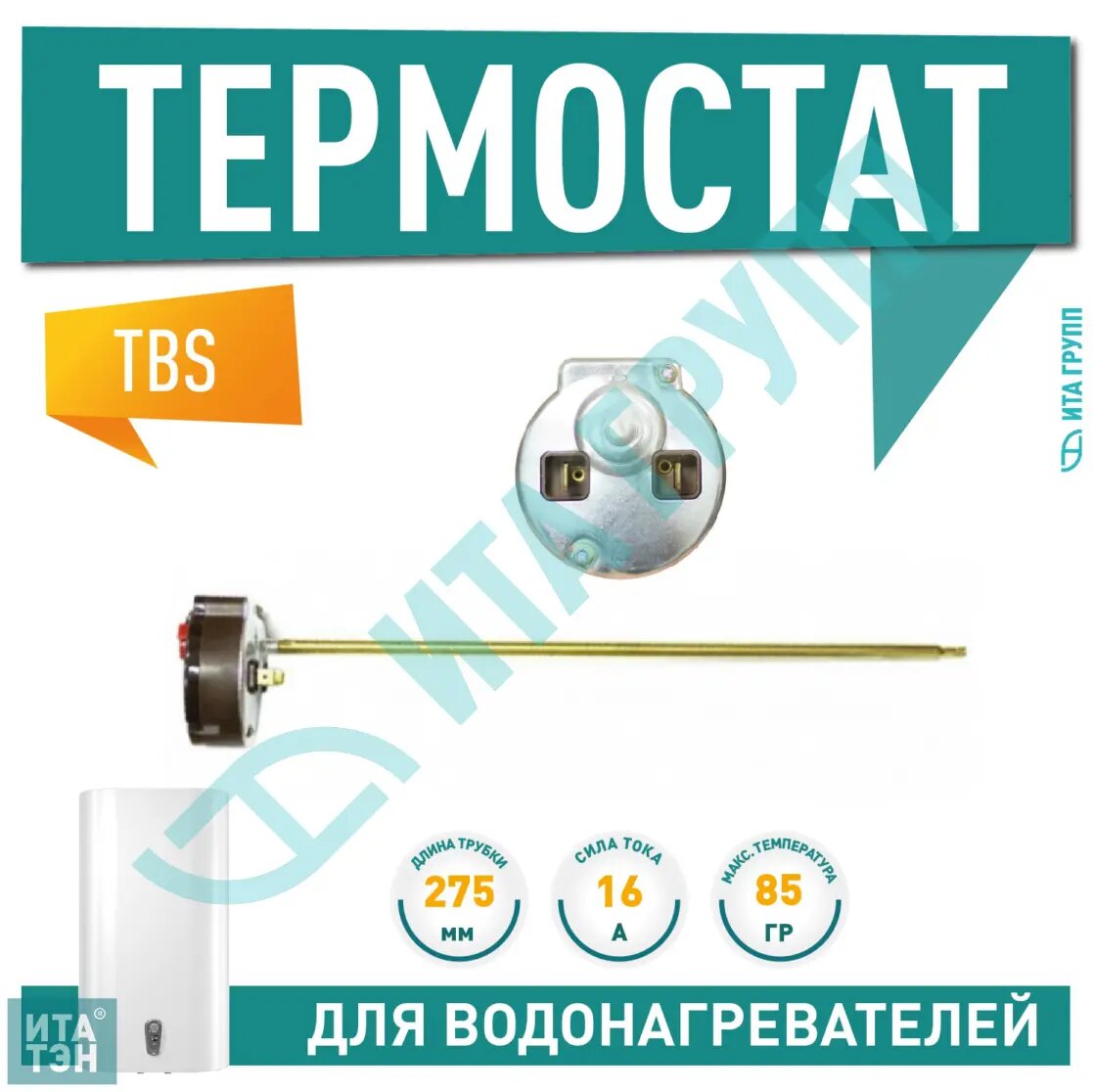 Термостат стержневой, регулируемый, с термозащитой на 85 С, TBS 16A, 70 С, 275мм, 250V