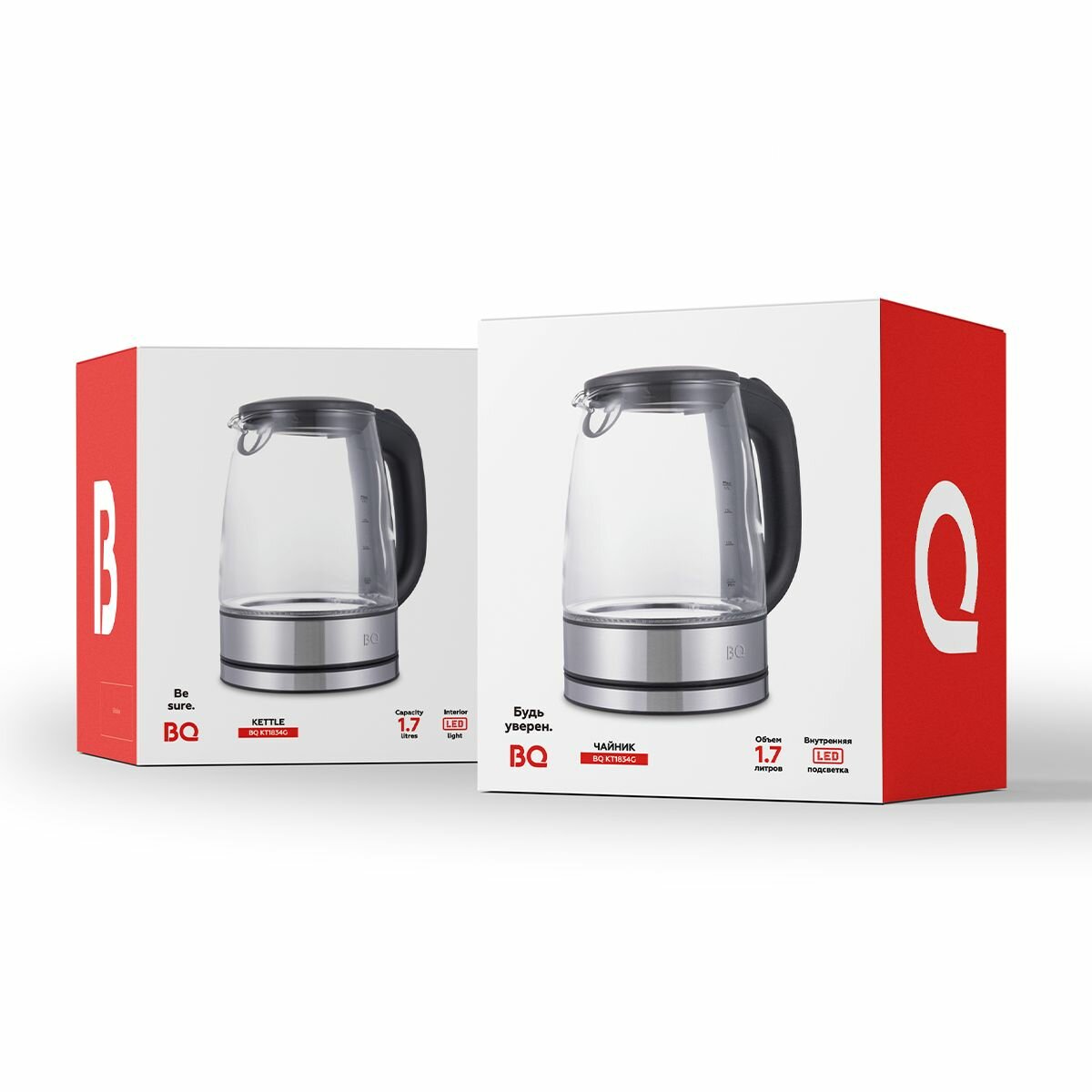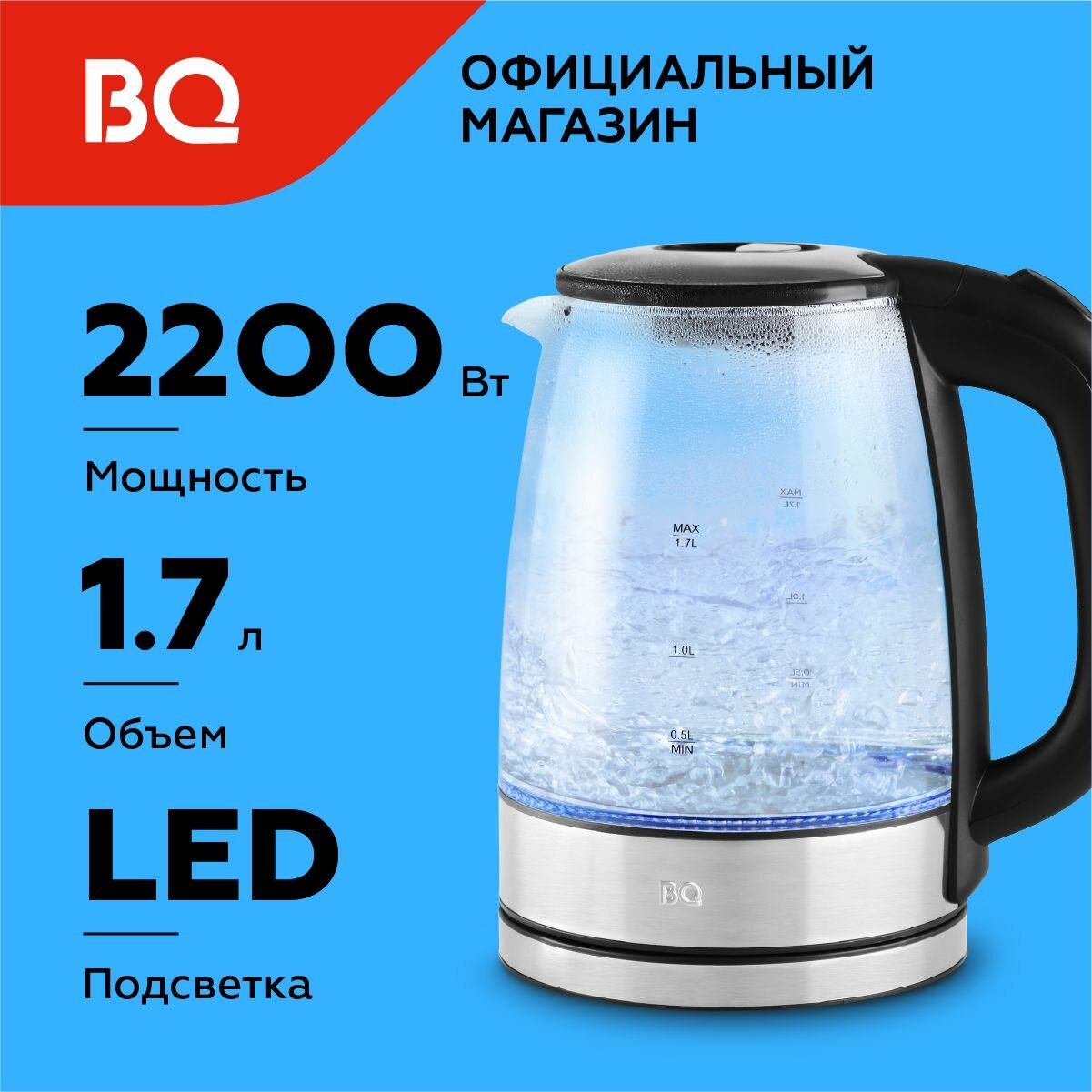 Чайник BQ KT1834G, 2200Вт, 1,7л, стекло, сталь-черный /1/