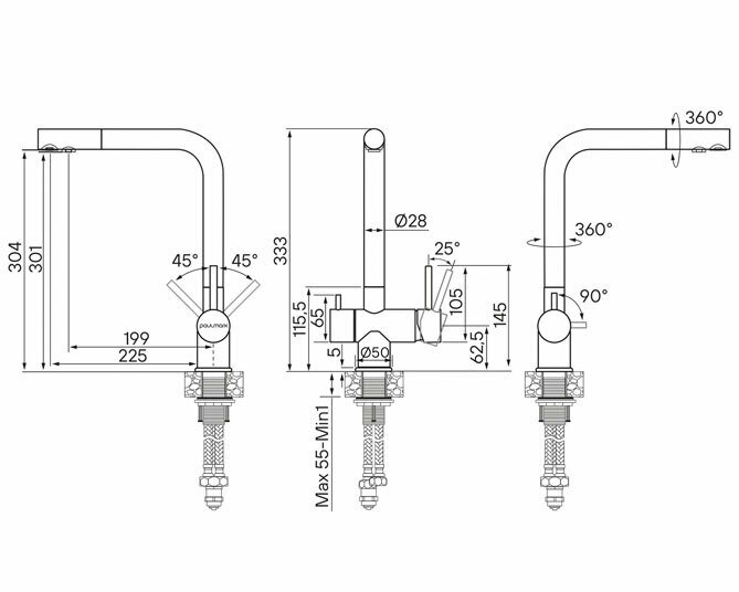 | Высота излива | 298 мм / 333 мм |