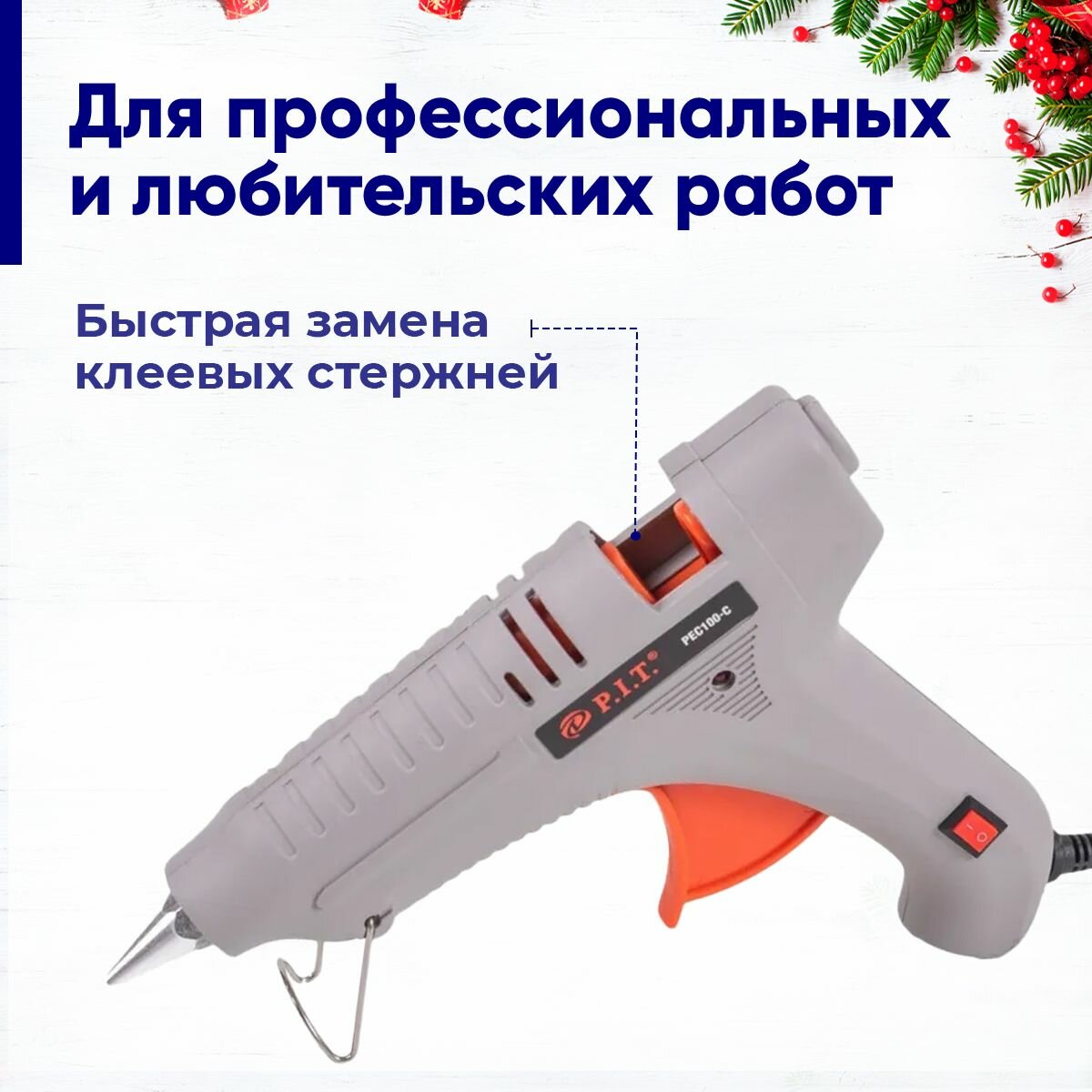 Клеевой пистолет P.I.T. PEC 100-C, стержень 20см D 11мм/ Пистолет для горячего клея, рукоделия и ремонта