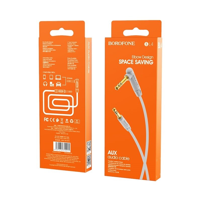 Аудиокабель BOROFONE BL4 AUX Jack 3.5 (m) - Jack 3,5 (m), 2 м, серый