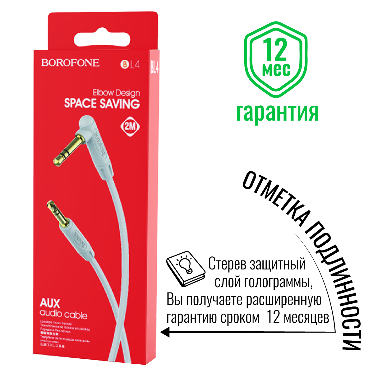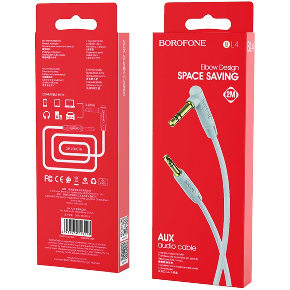 Кабель AUX mini jack 3.5мм на 3.5мм Borofone BL4 2м - серый интересное:
