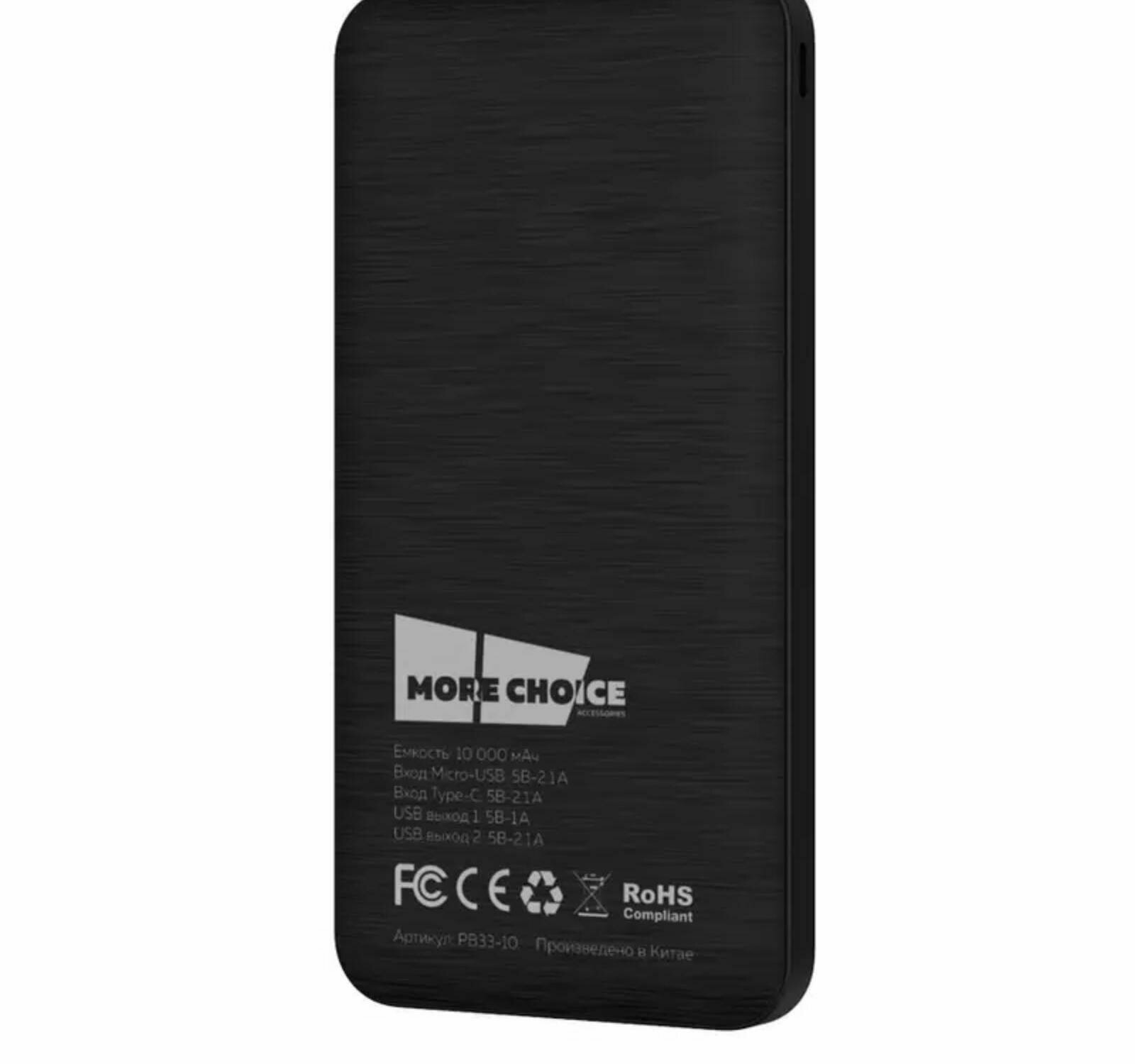 Внешний аккумулятор More Choice 10000 мАч PB33-10, черный