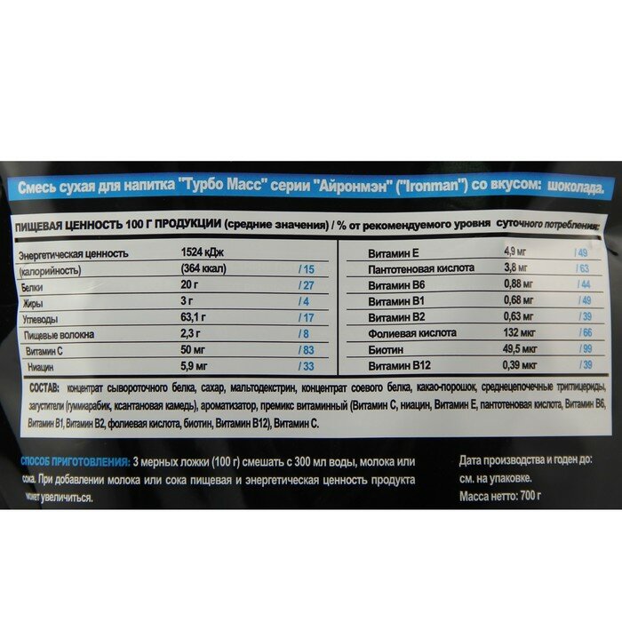 Ниже Вы можете прочитать отзывы на Гейнер Ironman Turbo Mass, шоколад, спортивное питание, 700 г, ознакомится с подробными характеристиками, посмотреть интересные обзоры и фотографии на Гейнер Ironman Turbo Mass, шоколад, спортивное питание, 700 г.