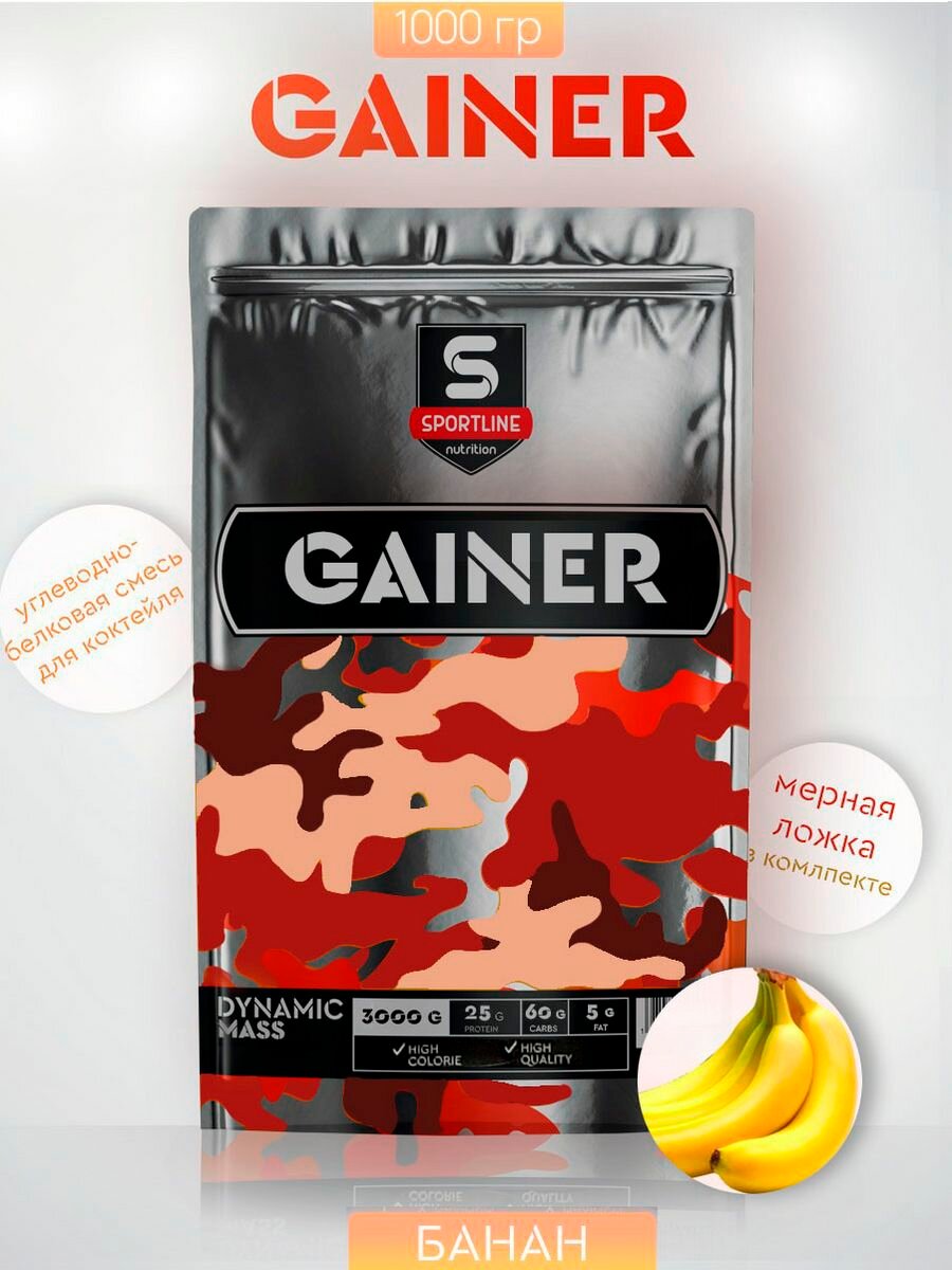 Гейнер SportLine Dynamic Mass, банан, 1000 г SportLine 4600910 .