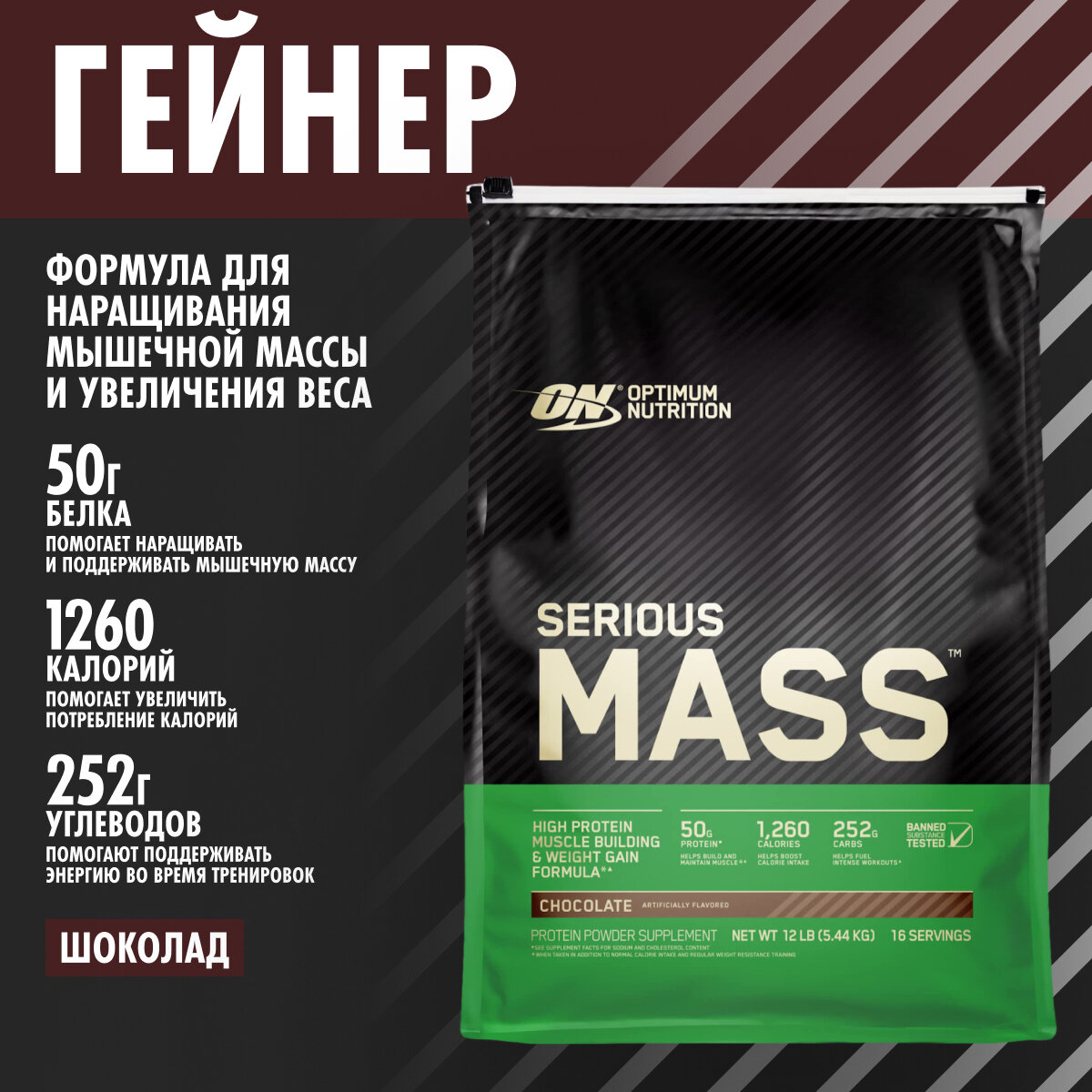 СохранитьOptimum Nutrition Serious Mass 5455 г (шоколад) интересное: