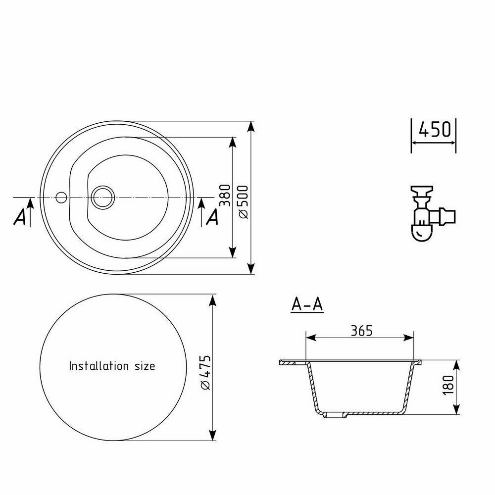 Мойка кухонная Ulgran из искусственного мрамора круглая U-101, цвет: графит, база: 47.5х47.5 см, арт. U-101-342