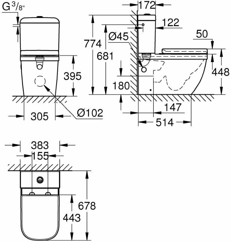Напольный унитаз Grohe Euro Ceramic с бачком и микролифтом, безободковый 39462000 интересное: