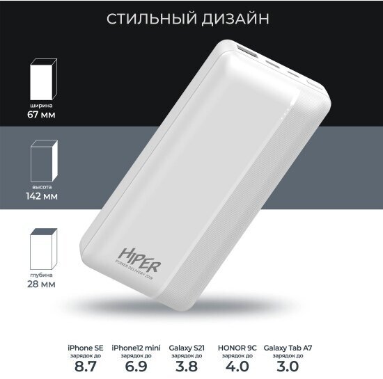 Внешний аккумулятор (Power Bank) HIPER, 20000мAч, белый
