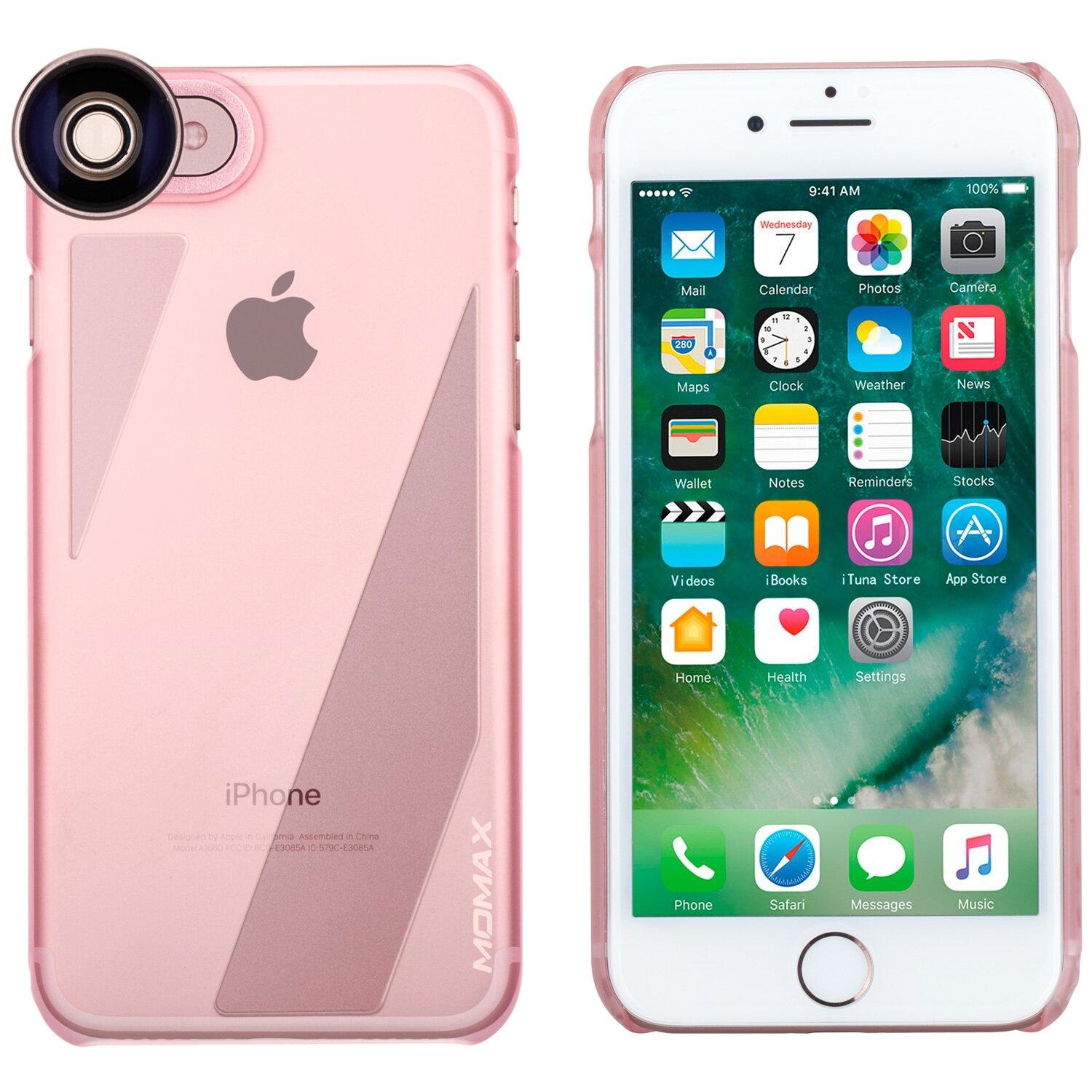 Фото чехол Momax X-Lens (комплект линз telephoto, wide-angle,macro, fisheye,CPL filter) для iPhone 8/7/SE 2020/2022 (CAMCAPIP7) розовый интересное: