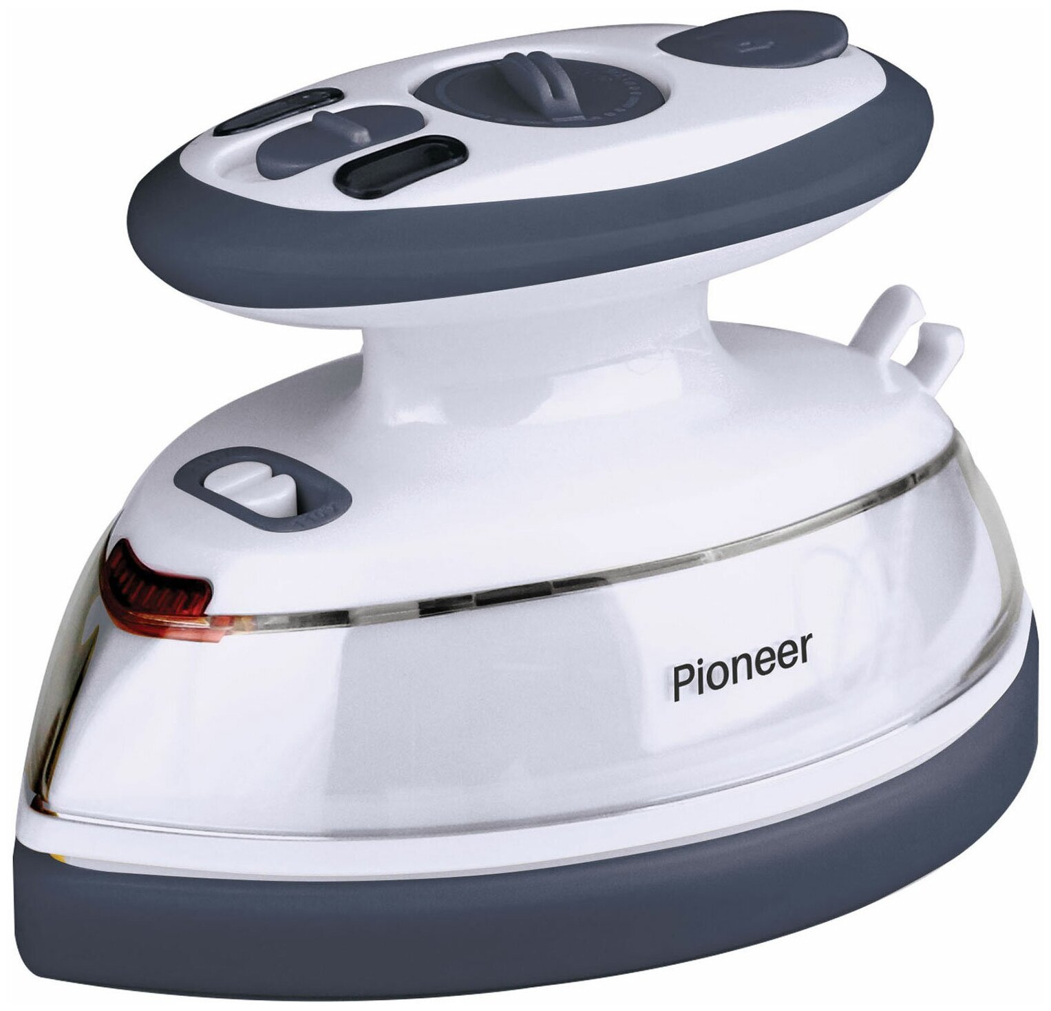 Утюг дорожный компактный Pioneer паровой с антипригарной подошвой и защитной силиконовой подставкой, 499 Вт