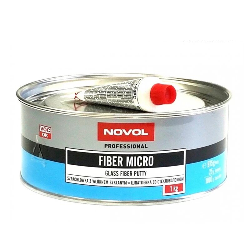 Шпатлевка автомобильная NOVOL FIBER MICRO Glass Fiber Putty со стекловолокном полиэфирная 1 кг
