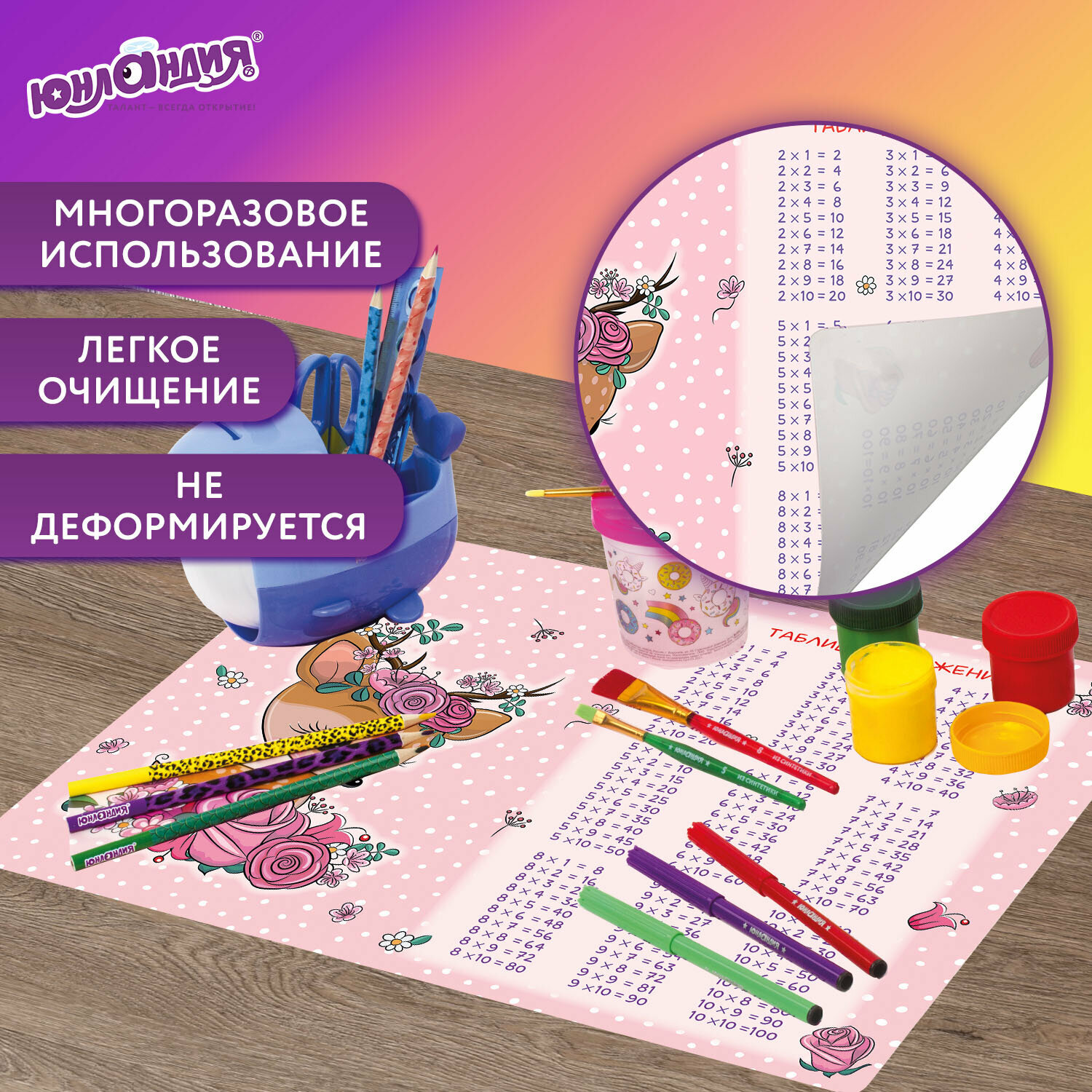 Настольное покрытие Юнландия А3+, пластик, 46x33 см "Fawn"