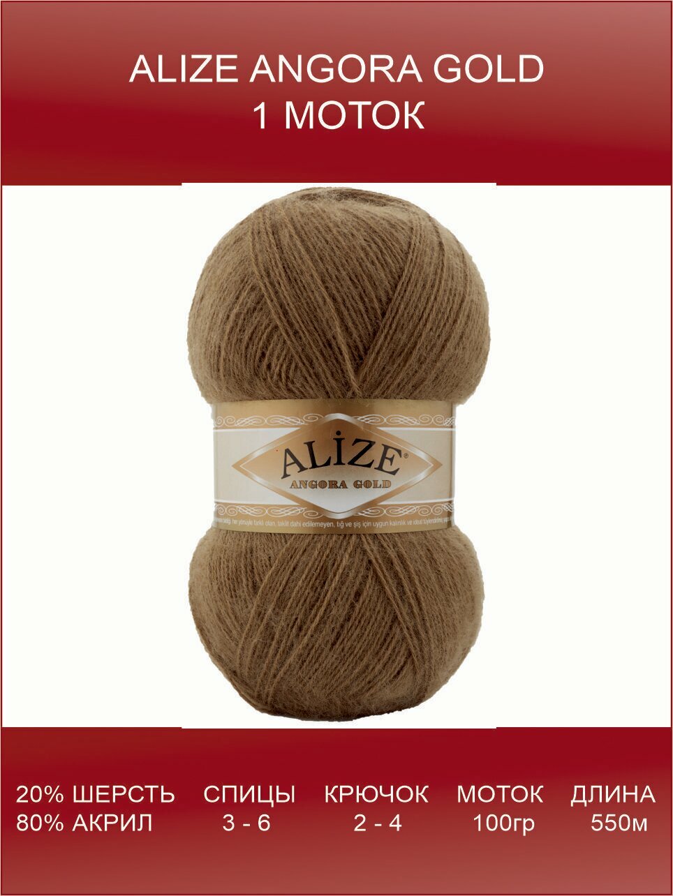 Пряжа для вязания ALIZE 'Angora Gold', 100г, 550м (80% акрил, 20% шерсть), ТУ (543 кофе с молоком), 5 мотков