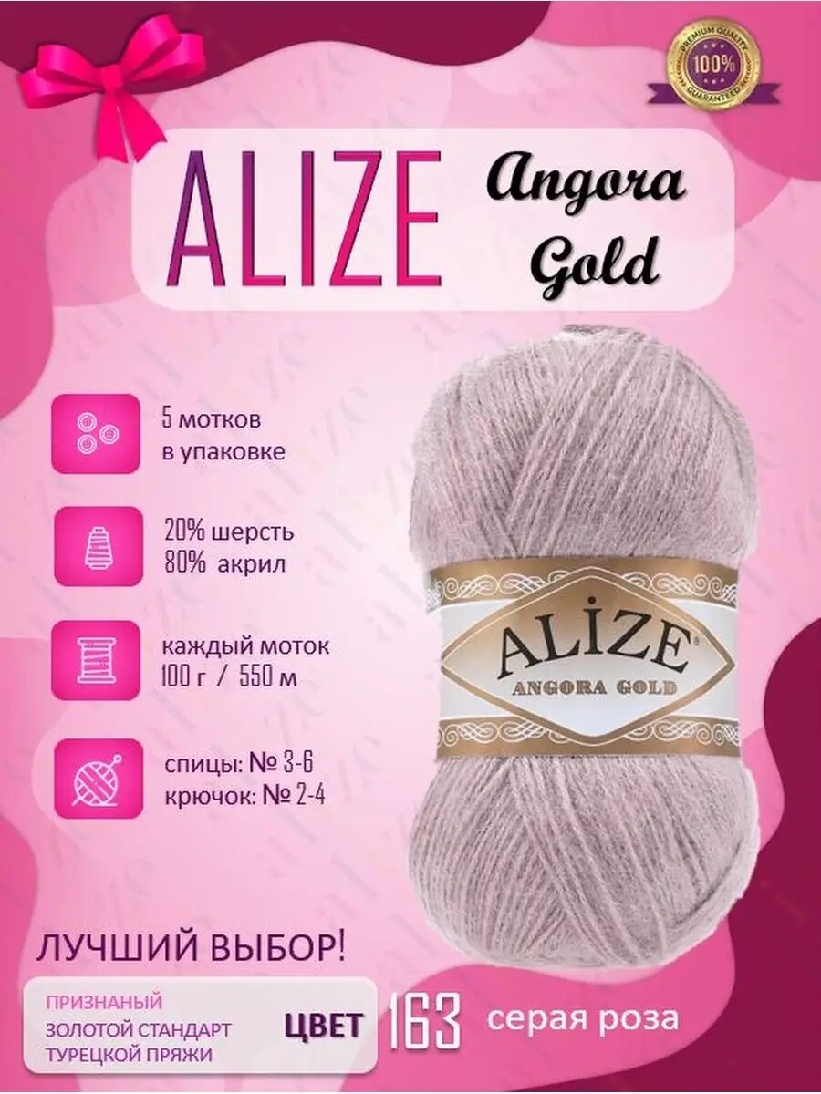 Пряжа Alize Angora Gold | Турция | 5шт упаковка | Акрил: 80%, Шерсть: 20%