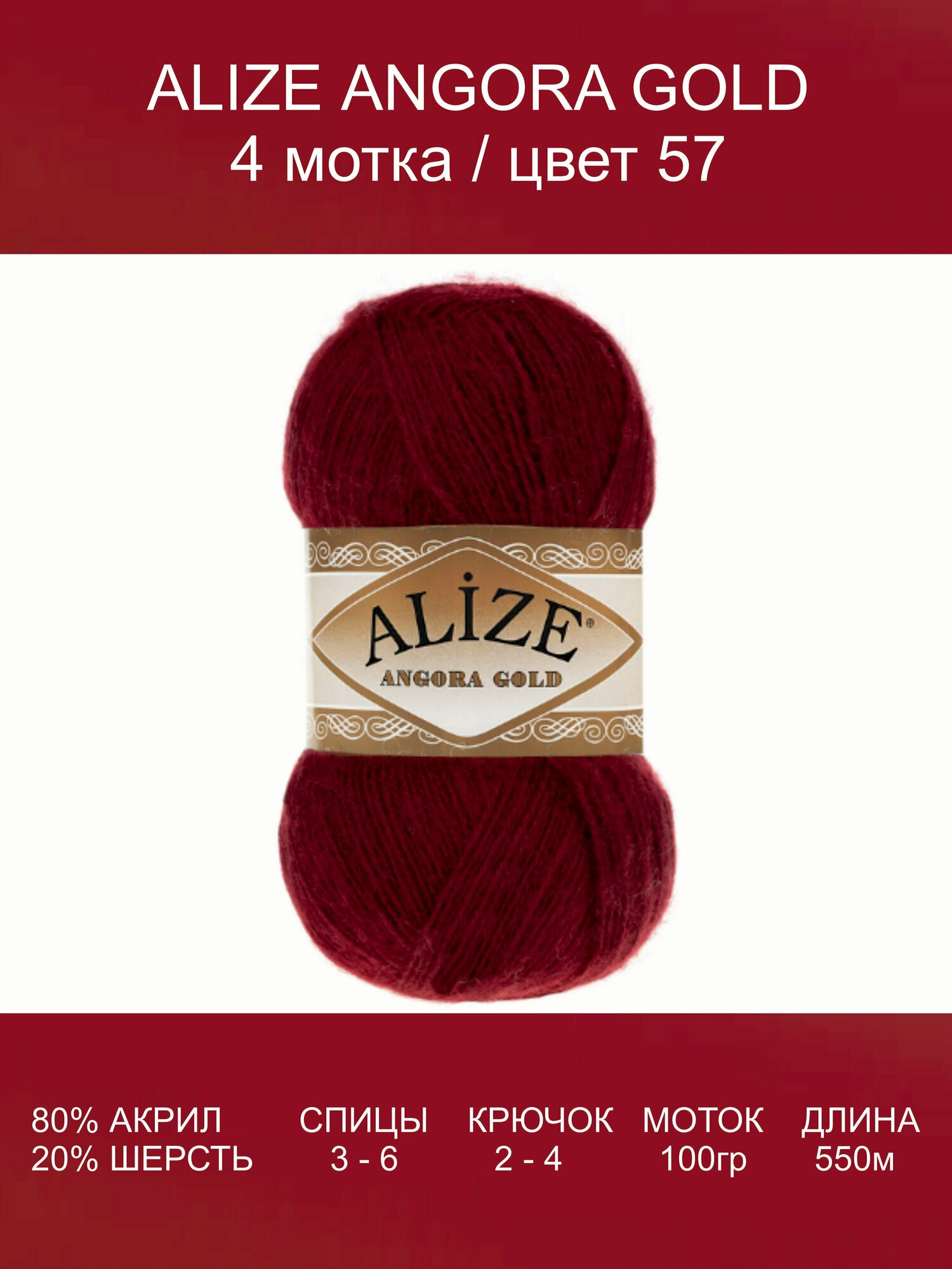 Купить Пряжа для вязания ALIZE Angora Gold Ализе Ангора Голд: 57 (бордовый), 4 шт 550 м 100 г, 20% шерсть, 80% акрил