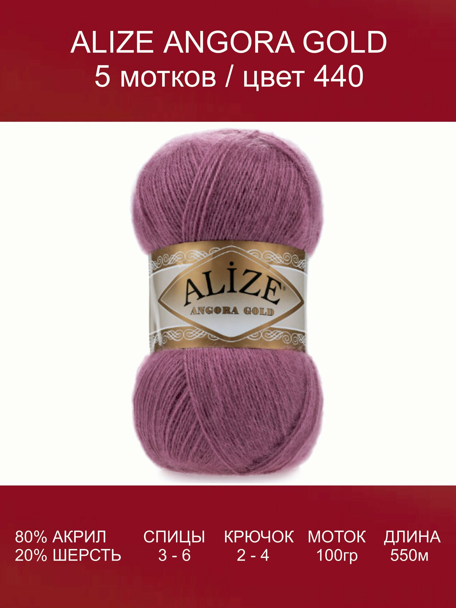 Купить Пряжа для вязания ALIZE Angora Gold Ализе Ангора Голд: 440 (темная роза), 5 шт 550 м 100 г, 20% шерсть, 80% акрил