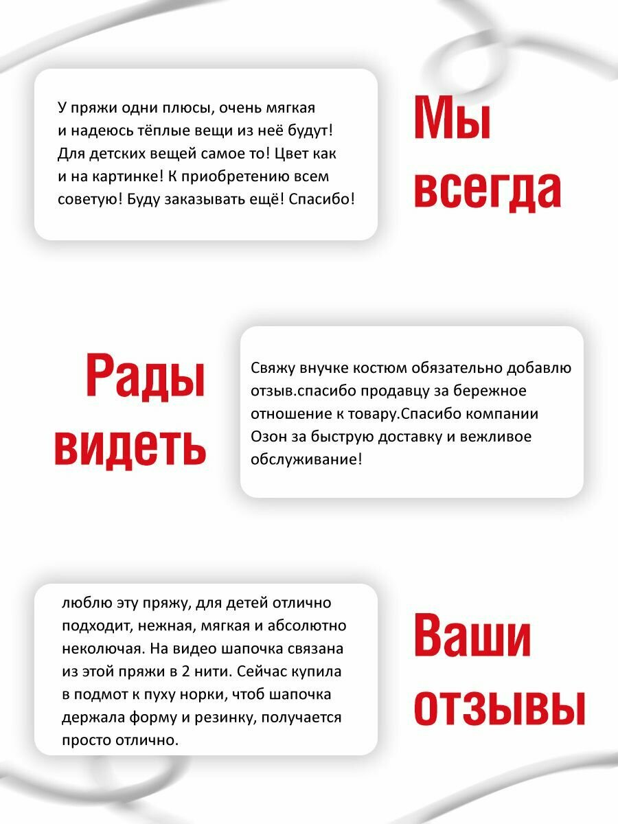 | Плюсы: | Мягкая, подходит детям, совершенно не колючая. Легко вяжется, отлично носится. |