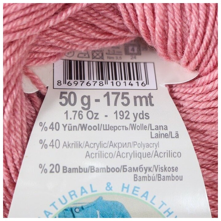 Пряжа Alize Baby Wool розовый (194), 40%шерсть/20%бамбук/40%акрил, 175м, 50г, 3шт