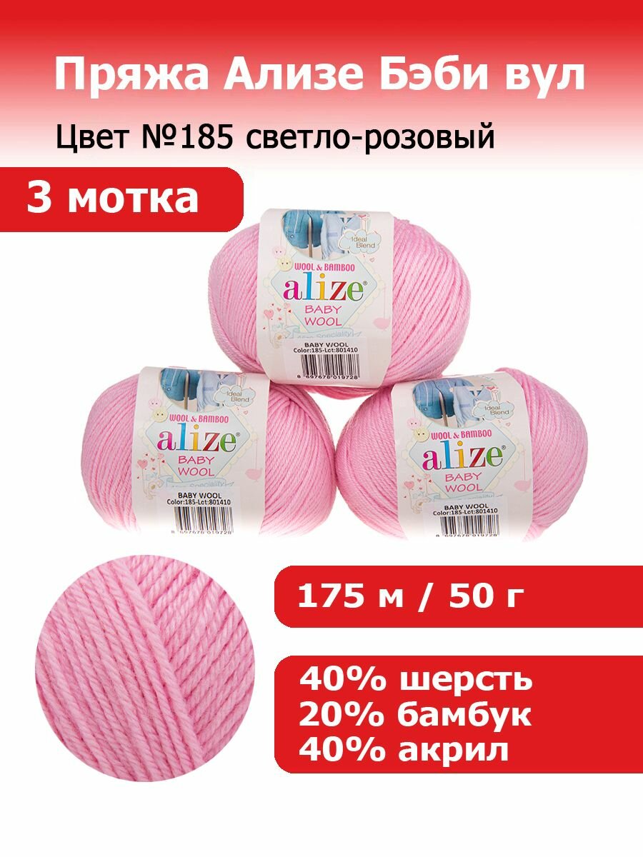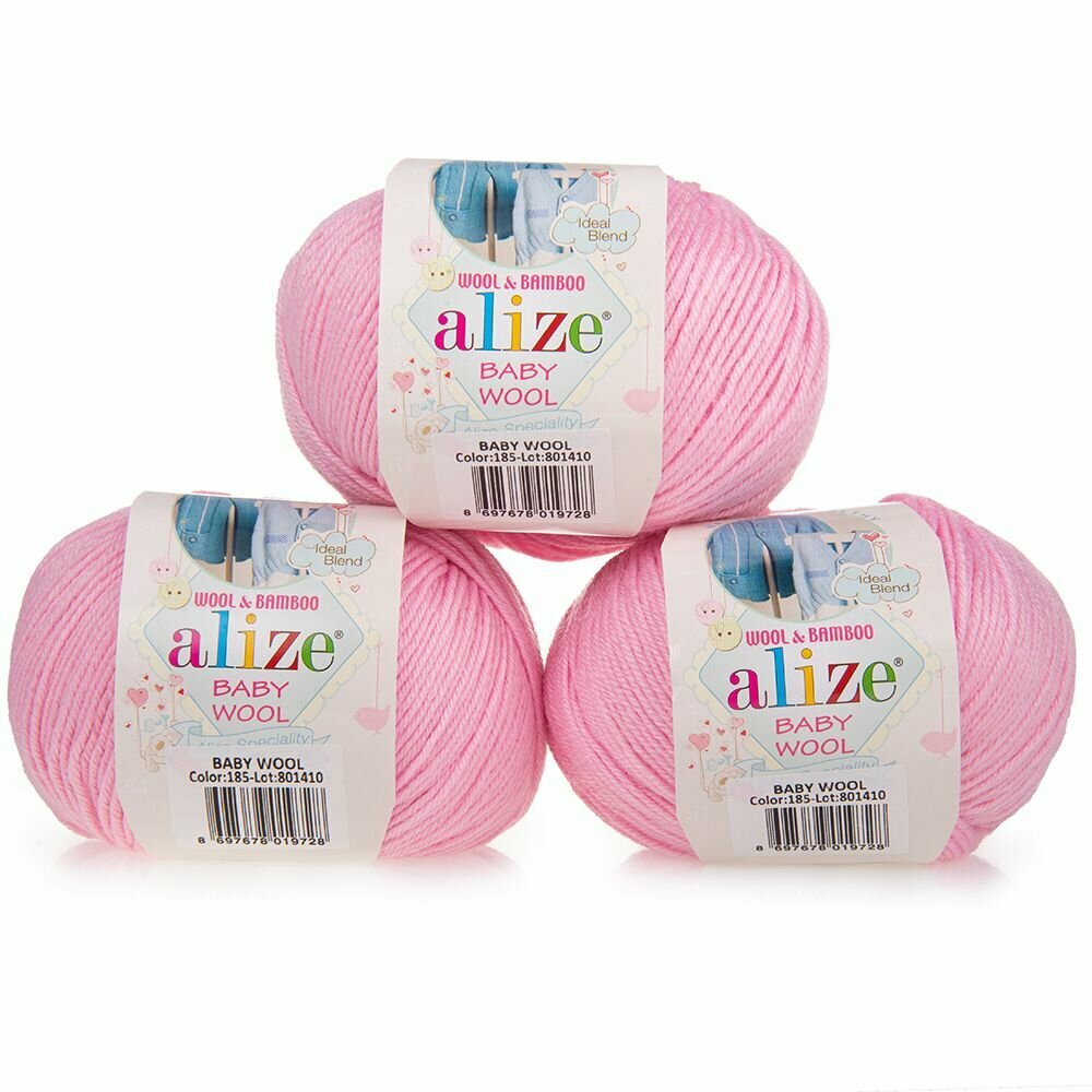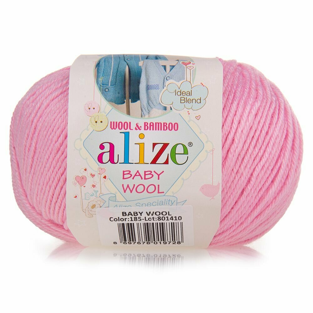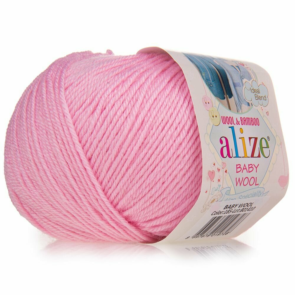 Пряжа Alize Baby Wool, 40 % шерсть, 40 % акрил, 20 % бамбук, 50 г, 175 м, 1 шт., 185 светло-розовый