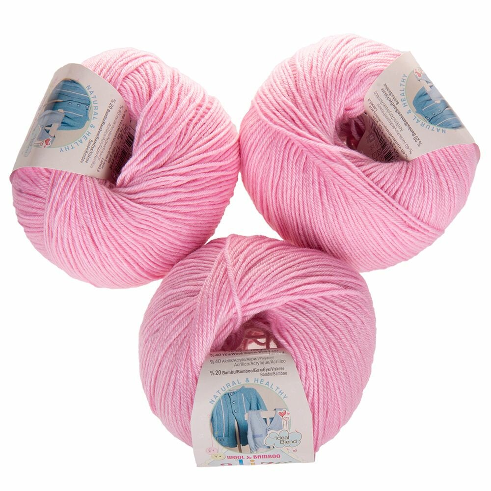 Пряжа "Baby Wool", цвет: 185 - Розовый светлый, 3 шт., Бамбук 20%, Шерсть 40%, Акрил 40%, 50 гр. 175 м.