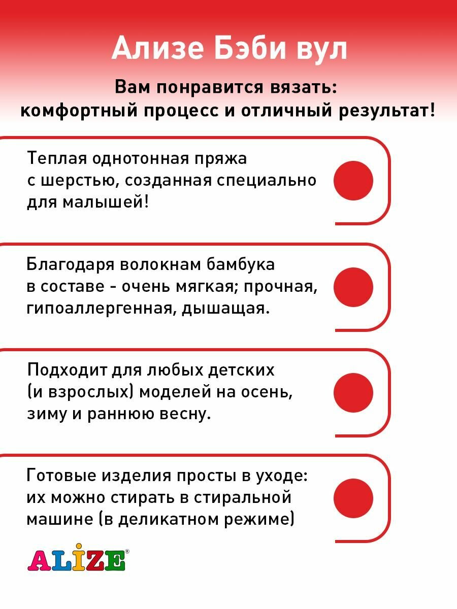 Пряжа Alize Baby Wool, 40 % шерсть, 40 % акрил, 20 % бамбук, 50 г, 175 м, 1 шт., 56 красный