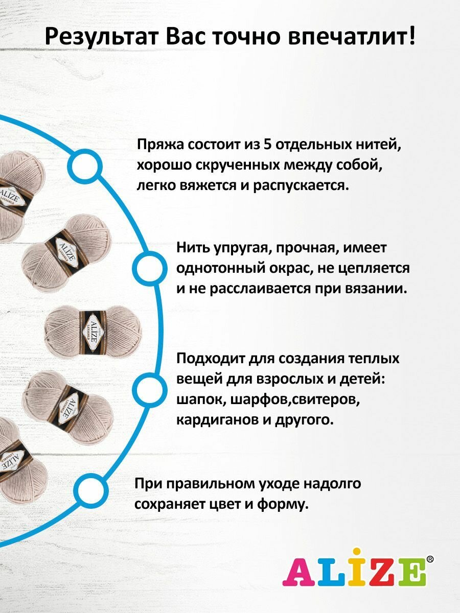 Пряжа Ализе Ланаголд 5 мотков/100г/240м цвет: беж 5