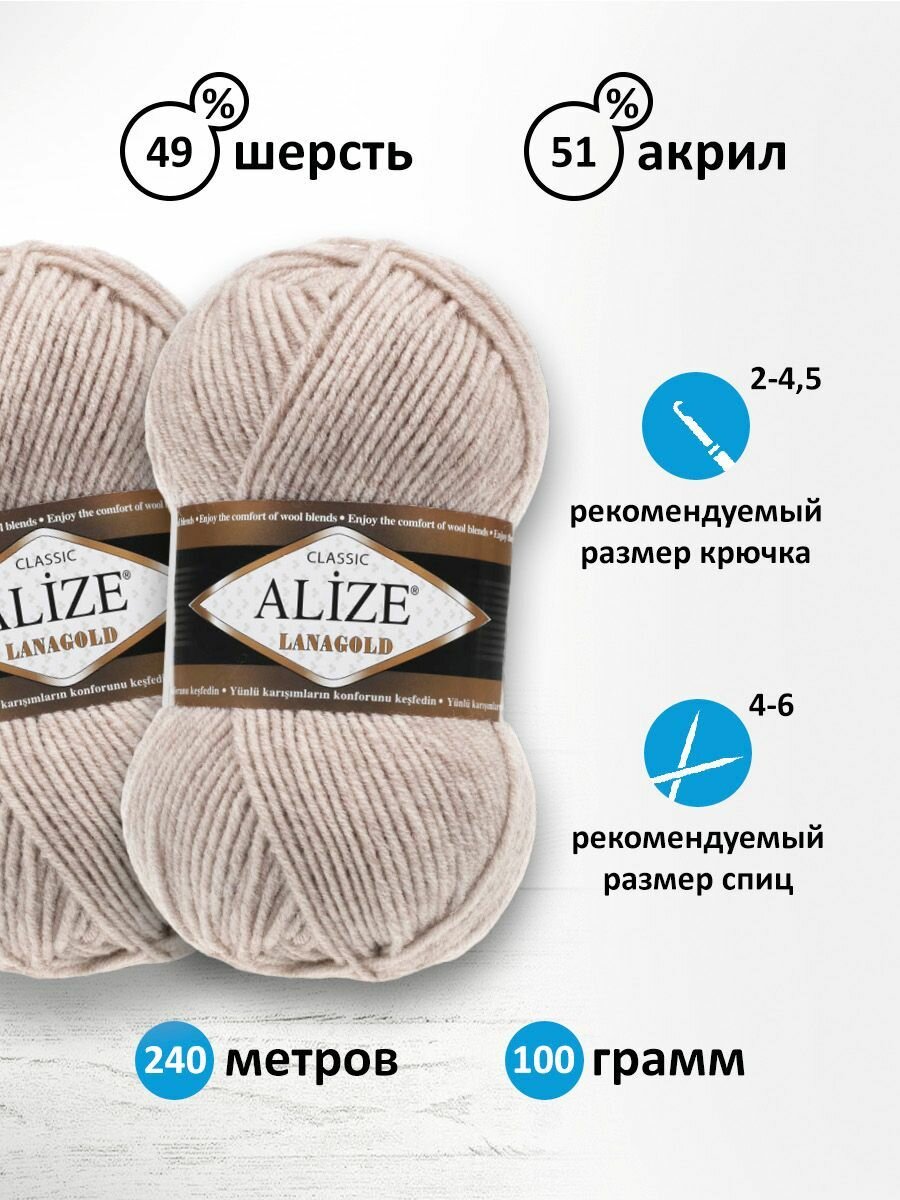 Пряжа Alize Lanagold бежевый (05), 51%акрил/49%шерсть, 240м, 100г, 1шт