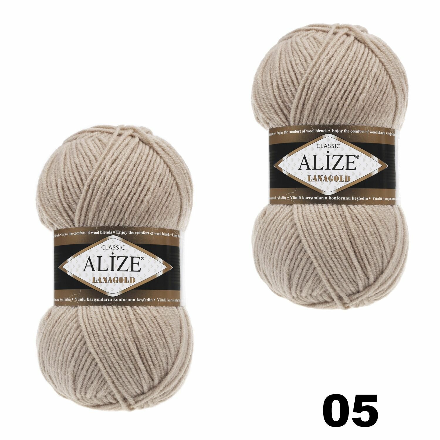 Купить Пряжа Alize Lanagold бежевый (05), 51%акрил/49%шерсть, 240м, 100г, 2шт