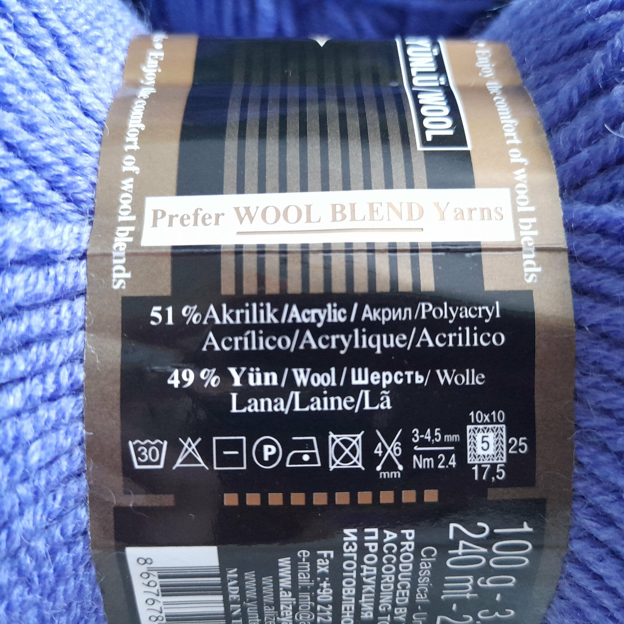 Пряжа Alize Lanagold (Ланаголд) - 1 моток Цвет: 215 черника 49% шерсть, 51% акрил 100г 240м