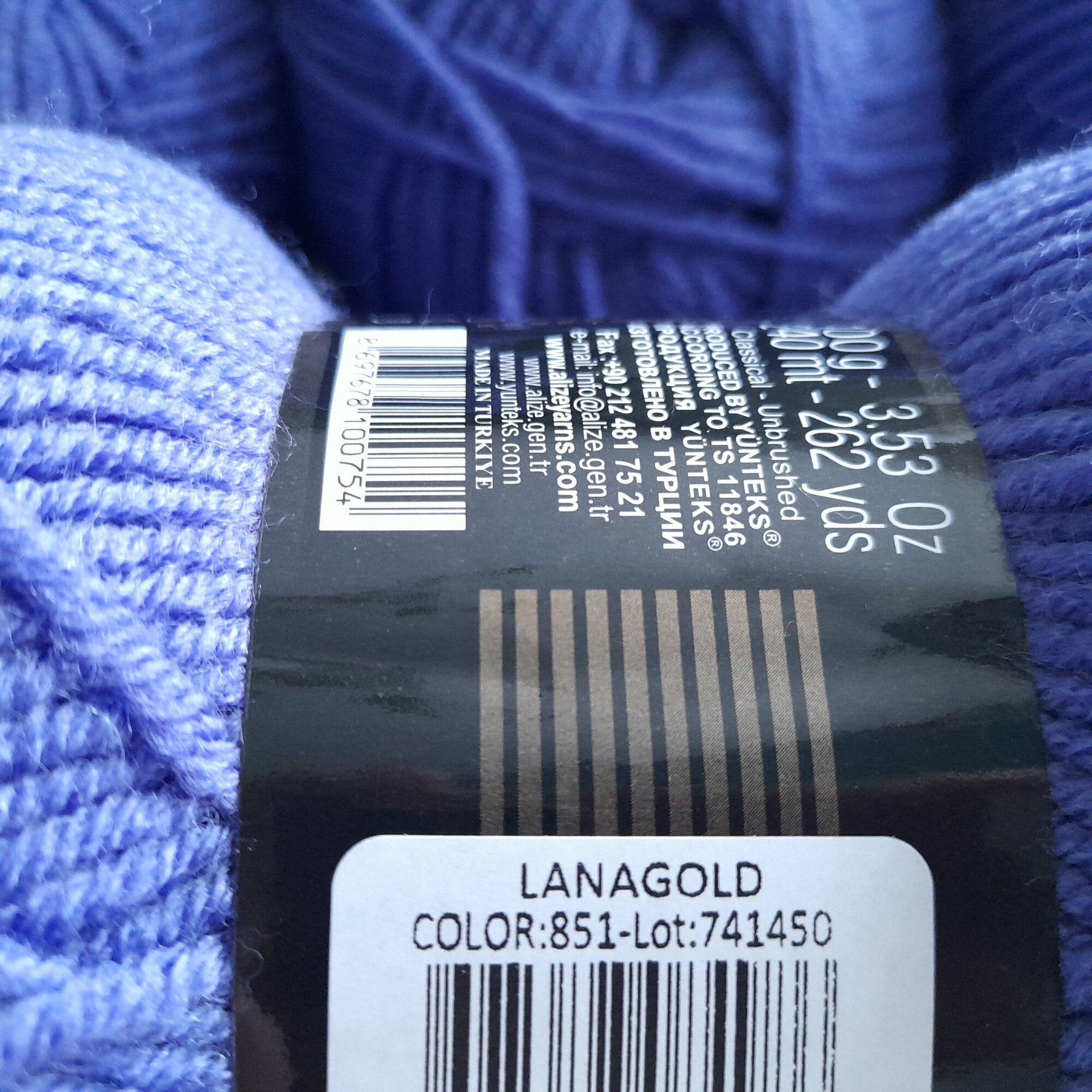 Купить Пряжа ALIZE LANAGOLD, тем.сирень - 851, 49% шерсть, 51% акрил, 5 мотков, 100 г., 240 м.