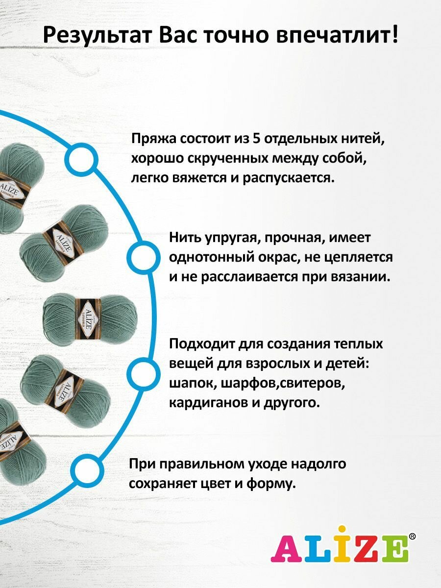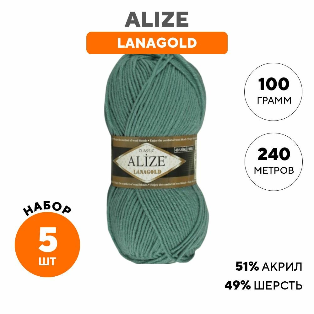 Пряжа Alize Lanagold (Ланаголд) цвет античный зеленый 507, 49% шерсть, 51% акрил 100г 240м 5шт