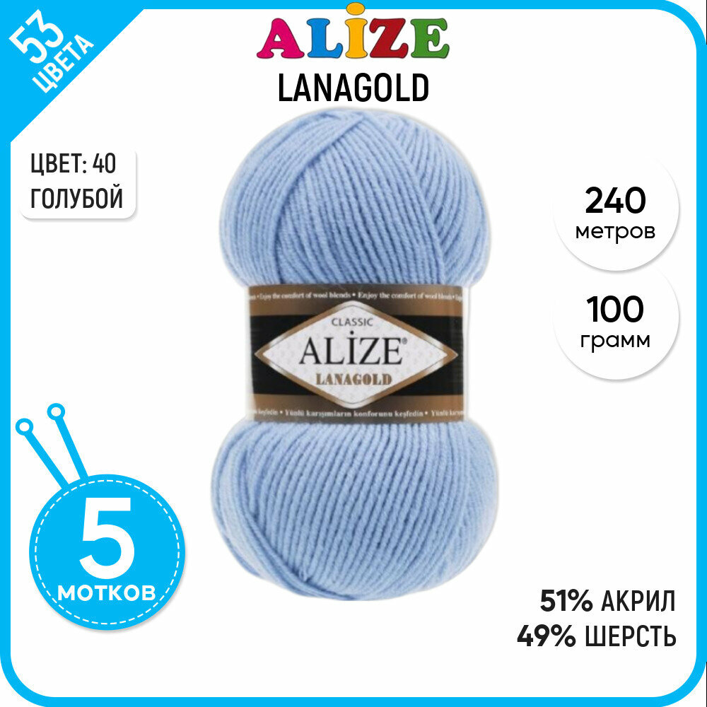 Купить Пряжа для вязания ALIZE 'Lanagold', 100г, 240м (49% шерсть, 51% акрил) (40 голубой), 5 мотков