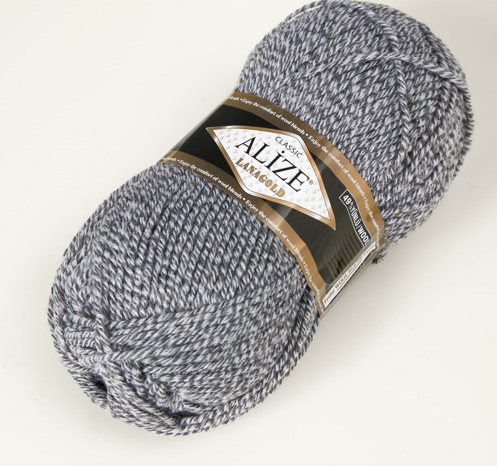 Пряжа Alize Lanagold (Ланаголд) - 1 моток Цвет: 182 средне-серый меланж 49% шерсть, 51% акрил 100г 240м