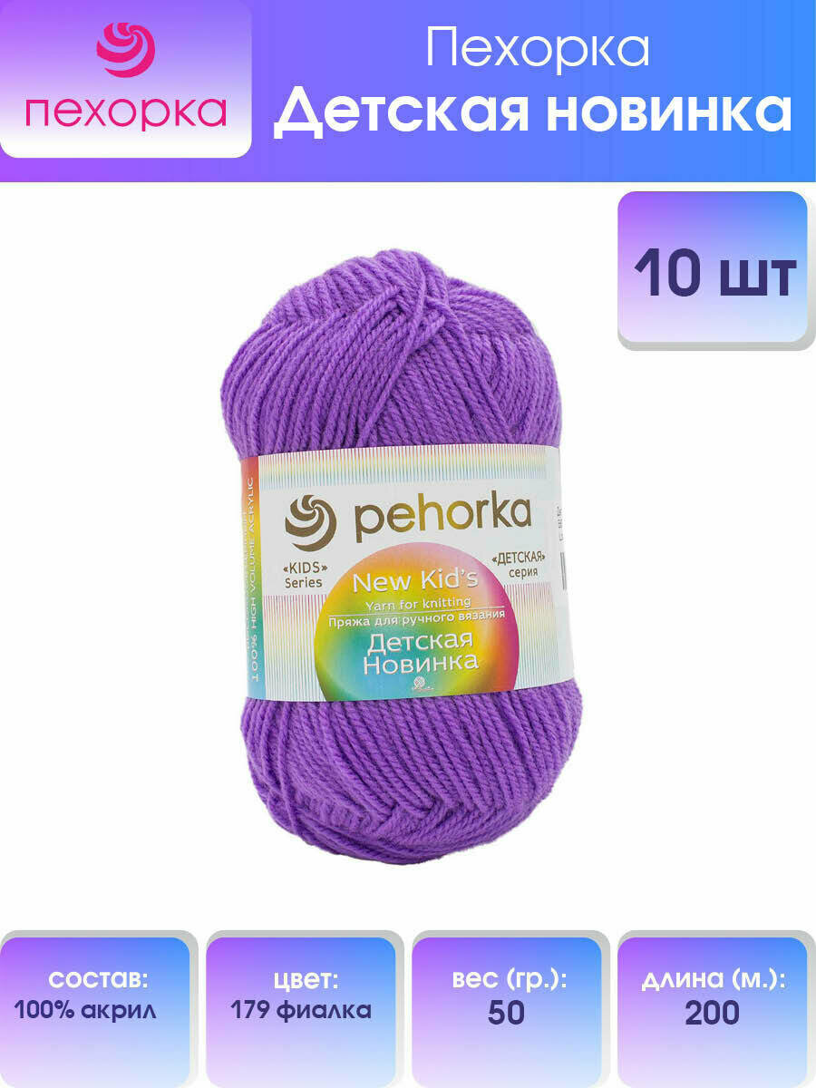 Пряжа для вязания Пехорка "Детская новинка" для детей, 10 шт, Фиалка №179