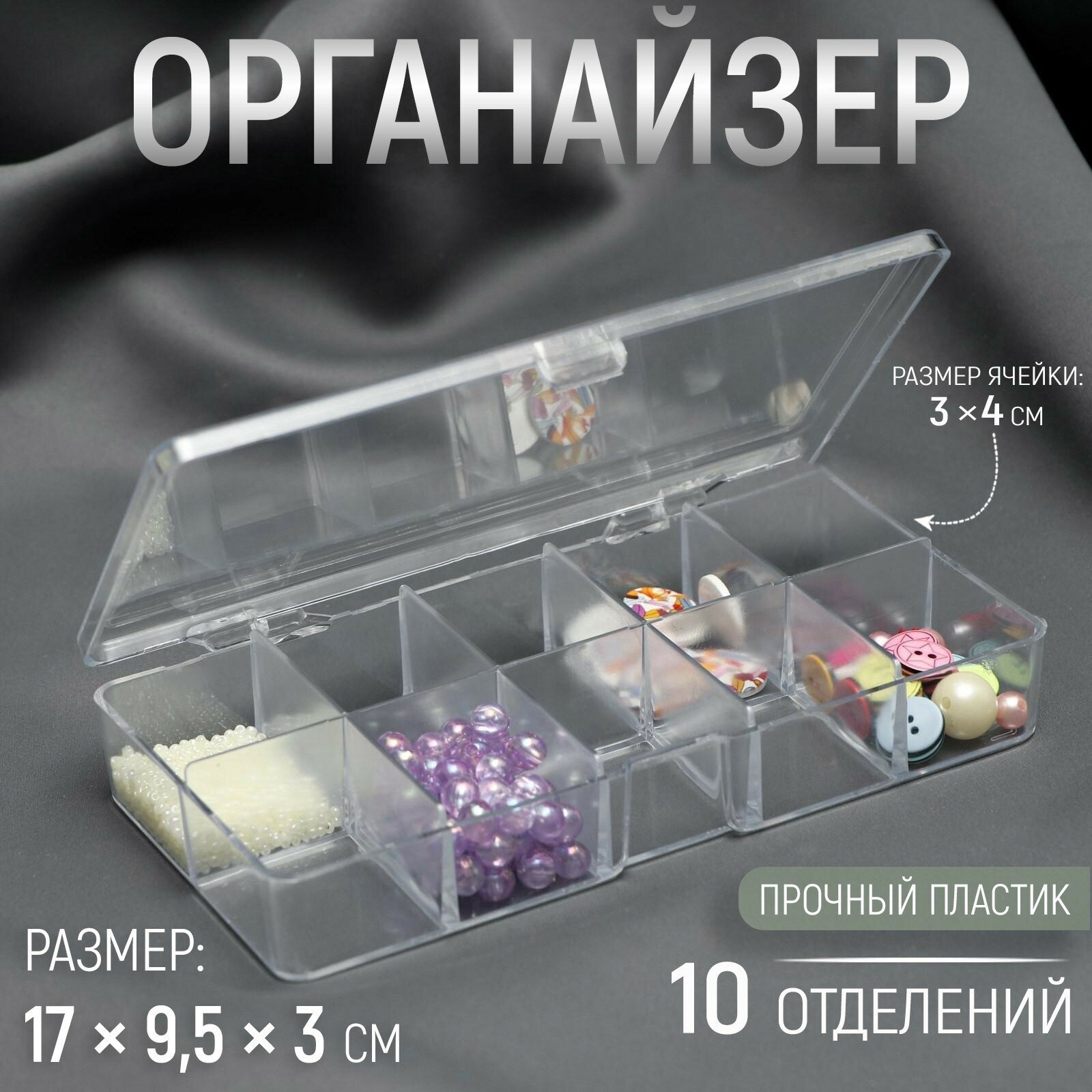 Органайзер для рукоделия, 10 отделений, 17 × 9,5 × 3 см. В наборе 1шт.