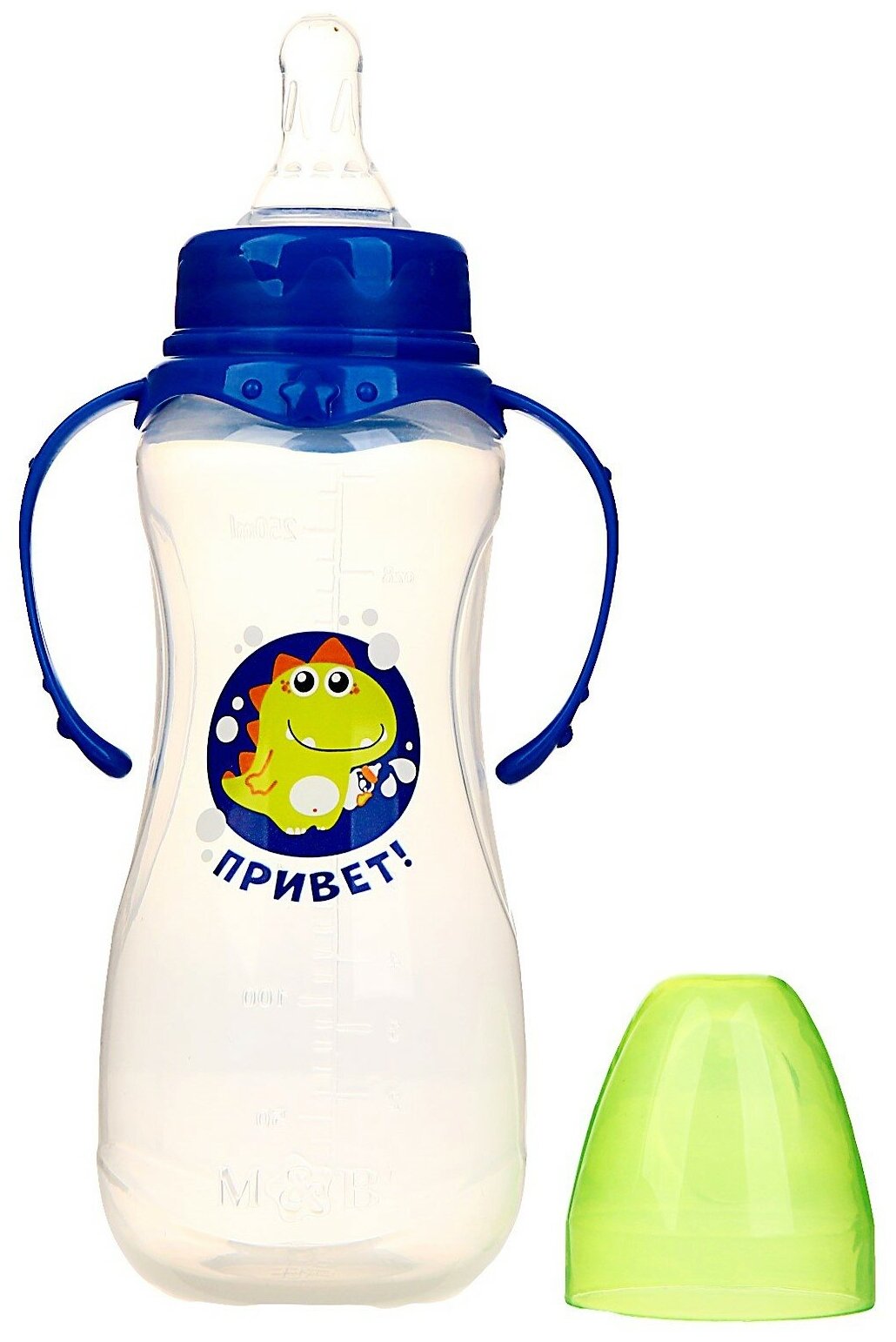 Бутылочки Mum&Baby Бутылочка для кормления «Динозаврик Рикки» детская приталенная, с ручками, 250 мл, от 0 мес., цвет синий