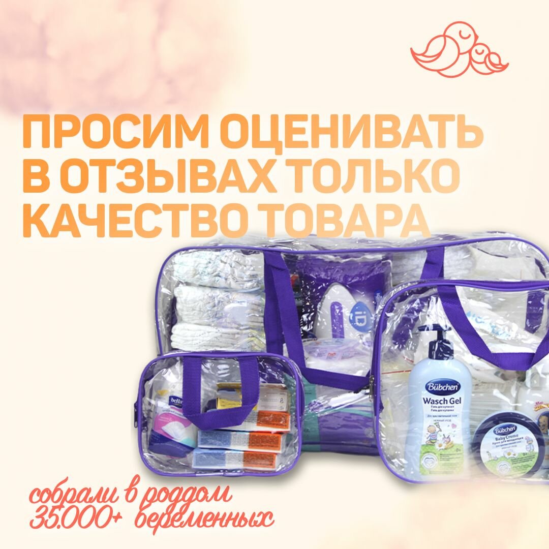 Сумка в роддом для мамы и малыша готовая с наполнением, 29 предметов + 3 сумки, комплектация "Премиум", фиолетовая