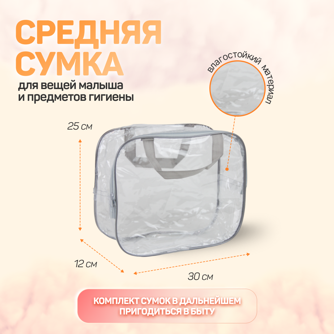 Купить Сумка в роддом для мамы и малыша готовая с наполнением, 29 предметов + 3 сумки, комплектация "Премиум", прозрачная